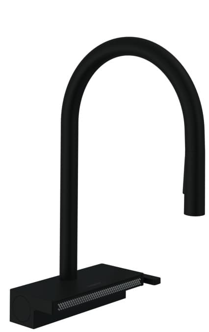 Potřebný standardní otvor pro baterii (35 mm) ve středové poloze vůči dřezu; vzdálenost od stěny dřezu max. 45 mmDoporučuje se jednodřez. Po ověření možný i dvojdřezFlexibilní hadice (G ⅜, DN15) s certifikací pro rozvod pitné vody se snadným připojením ke standardním rohovým ventilůmExkluzivní design: Revoluce v kuchyni díky inovativním funkcím a novému tvaru.SatinFlow: hansgrohe přináší do kuchyně úsporný plochý vodní proud, který nabízí úplně nové možnosti.Výrazný kontrast: Trendová matná černá barva podtrhuje úzký základní tvar a zvýrazňuje exkluzivní design.Optimální tok vody: Pro efektivní práci a zábavnější vaření.Voda na přání: 3 typy proudu se přepínají stisknutím tlačítkaVětší volnost pohybu: Vzdálenost výtoku baterie od dřezu činí 165 mm, otočný vývod lze také nastavovat ve 3 stupních (o 60°, 110°, nebo 150°).Včetně boxu s hadicí (sBox): Ten slouží k prodloužení vytahovacího výtoku až na 76 cm a zajistí pořádek ve spodní skříňce.Magnetické uchycení: Vytahovací sprška drží bezpečně uprostřed vývodu baterie (hansgrohe MagFit).Krystalicky čistý, plný proud s průtokem až 7 l/min umožňuje rychlé napouštění hrnců. SatinFlow a jemný sprchový proud slouží k úspornému mytí při průtoku max. 4 l/min.Snadná instalace: Připojení baterie k přívodu vody zajišťují flexibilní hadice (G ⅜). Otvor na kohoutek musí mít průměr 35 mm; vzdálenost od stěny dřezu max. 45 mm.Včetně multifunkčního sítka: V kombinaci s typem proudu SatinFlow slouží k šetrnému mytí s následným odkapáním.Snadné čištění: Vodní kámen lze snadno odstranit otřením silikonových trysek na výtoku (QuickClean).Součásti dodávky: páková kuchyňská baterie, přívodní hadice, upevnění dříku, upevňovací materiál, montážní návodVšechny součásti jsou vyrobeny z vysoce kvalitních materiálů – pro větší bezpečnost a dlouhodobé užívání v domácnosti.Historie hansgrohe od roku 1901 – prémiová značka výrobků pro koupelnu a kuchyňProdloužená pětiletá záruka* (viz. www.hansgrohe.cz/zaruka) na produkt, vyrobený podle nejvyšších kvalitativních standardůPARAMETRY: