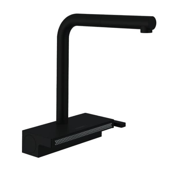 Potřebný standardní otvor pro baterii (35 mm) ve středové poloze vůči dřezu; vzdálenost od stěny dřezu max. 45 mmDoporučuje se jednodřez. Po ověření možný i dvojdřezFlexibilní hadice (G ⅜, DN15) s certifikací pro rozvod pitné vody se snadným připojením ke standardním rohovým ventilůmExkluzivní design: Revoluce v kuchyni díky inovativním funkcím a novému tvaru.SatinFlow: hansgrohe přináší do kuchyně úsporný plochý vodní proud, který nabízí úplně nové možnosti.Výrazný kontrast: Trendová matná černá barva podtrhuje úzký základní tvar a zvýrazňuje exkluzivní design.Optimální tok vody: Pro efektivní práci a zábavnější vaření.Voda na přání: 2 typy proudu se přepínají stisknutím tlačítka. SatinFlow je extra označený pro bezpečnější ovládání.Větší volnost pohybu: Vzdálenost výtoku baterie od dřezu činí 250 mm, otočný vývod lze také nastavovat ve 3 stupních (o 60°, 110°, nebo 150°).Včetně boxu s hadicí (sBox): Ten slouží k prodloužení vytahovacího výtoku až na 76 cm a zajistí pořádek ve spodní skříňce.Magnetické uchycení: Vytahovací sprška drží bezpečně uprostřed vývodu baterie (hansgrohe MagFit).Krystalicky čistý plný proud s průtokem až 7 l/min. umožňuje rychlé napouštění hrnců. Typ proudu SatinFlow slouží k úspornému mytí choulostivých potravin při průtoku max. 4 l/min.Snadná instalace: Připojení baterie k přívodu vody zajišťují flexibilní hadice (G ⅜). Otvor na kohoutek musí mít průměr 35 mm; vzdálenost od stěny dřezu max. 45 mm.Včetně multifunkčního sítka: V kombinaci s typem proudu SatinFlow slouží k šetrnému mytí s následným odkapáním.Snadné čištění: Vodní kámen lze snadno odstranit otřením silikonových trysek na výtoku (QuickClean).Součásti dodávky: páková kuchyňská baterie, přívodní hadice, upevnění dříku, upevňovací materiál, montážní návodVšechny součásti jsou vyrobeny z vysoce kvalitních materiálů – pro větší bezpečnost a dlouhodobé užívání v domácnosti.Historie hansgrohe od roku 1901 – prémiová značka výrobků pro koupelnu a kuchyňProdloužená pětiletá záruka* (viz. www.hansgrohe.cz/zaruka) na produkt, vyrobený podle nejvyšších kvalitativních standardůPARAMETRY: