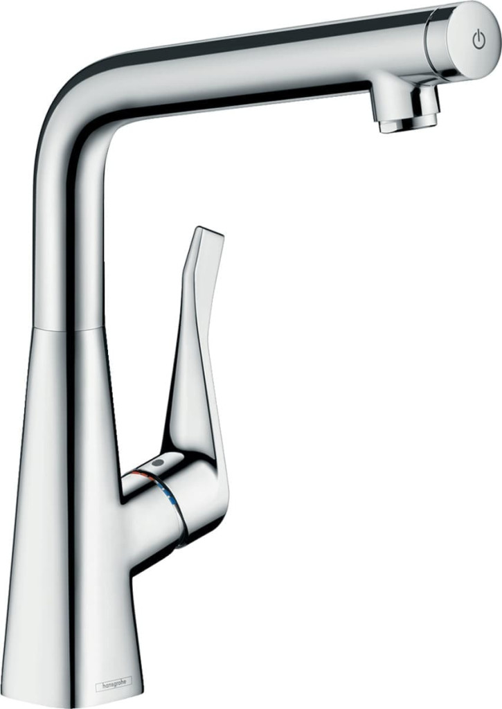 Páková kuchyňská baterie hansgrohe Metris Select v chromovém provedení, s komfortní výškou 320, stanoví v moderní kuchyni díky svému tvaru a funkci individuální akcenty. Ergonomický design s komfortní výškou výtoku poskytuje větší prostor pro každodenní kuchyňské práce a umožňuje bez problémů manipulovat i velkými nádobami (ComfortZone 320).