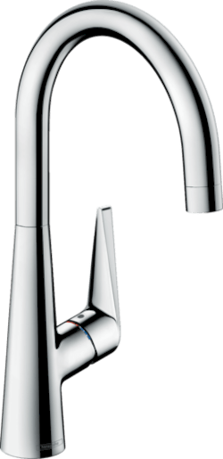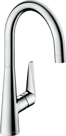 Páková kuchyňská baterie hansgrohe Talis M51 v chromovém provedení s komfortní výškou 260 je navržena speciálně pro otevřené (nízkotlaké) ohřívače vody a nabízí ideální předpoklady pro komfortní práci v kuchyni. Ergonomický design se zvláště výraznou výškou výtoku usnadňuje každodenní kuchyňskou rutinu a umožňuje bez problémů manipulovat i většími nádobami (ComfortZone 260).