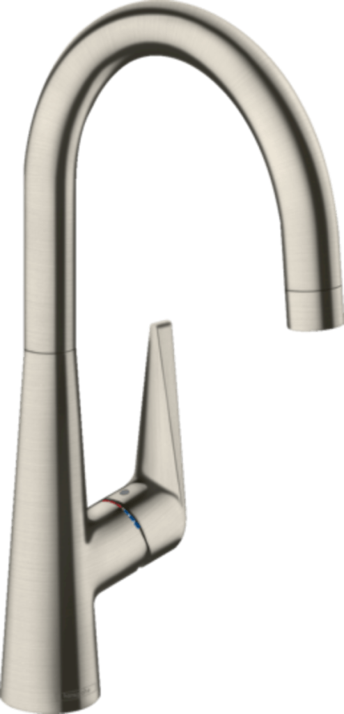 Páková kuchyňská baterie hansgrohe Talis M51 v nerezovém provedení, s komfortní výškou 260 zajišťuje základ pro pohodlnou práci v kuchyni. Ergonomický design s velkou výškou výtoku usnadňuje každodenní kuchyňskou rutinu a umožňuje snadnou manipulaci i s většími nádobami (ComfortZone 260).