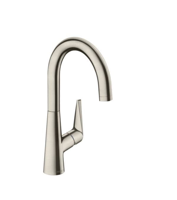 Páková kuchyňská baterie hansgrohe Talis M51 v nerezovém provedení s komfortní výškou 220 je dovednou kombinací tvaru a funkce. Ergonomický design s komfortní výškou výtoku usnadňuje každodenní kuchyňskou rutinu a umožňuje snadnou manipulaci i s většími nádobami (ComfortZone 220).