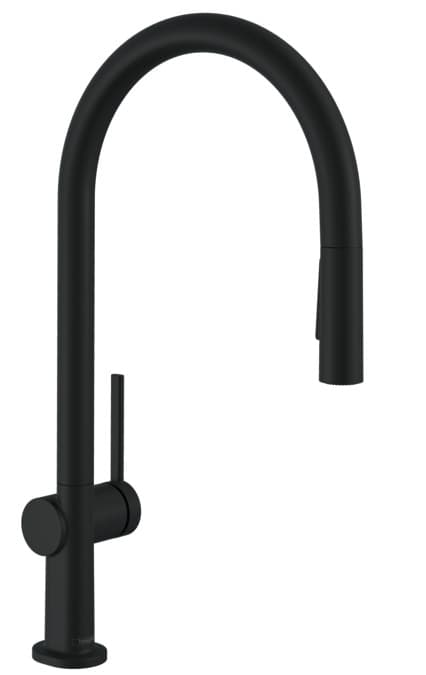 Vzhledem k vysokému půlkruhovému výtoku se páková kuchyňská baterie Talis M54 210 s vytahovací sprškou a 2 typy proudu od hansgrohe hodí především pro volně stojící kuchyňské ostrůvky. Pozornost v každé kuchyni ale upoutá také velký dřez. Moderní minimalistický design zaujme důsledným provedením nejmenších detailů. Všechny prvky jsou elegantně zasazeny do štíhlé siluety. Povrchy trendové matně černé barvy vytvářejí výrazný kontrast.