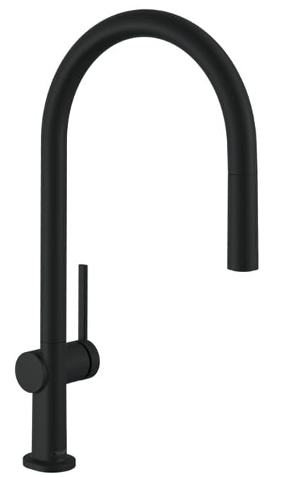 Vzhledem ke svému půlkruhovému výtoku se páková kuchyňská baterie Talis M54 210 s vytahovací sprškou od hansgrohe hodí především pro volně stojící kuchyňské ostrůvky. Pozornost v každé kuchyni ale upoutá také velký dřez. Moderní minimalistický design zaujme důsledným provedením nejmenších detailů. Všechny prvky jsou elegantně zasazeny do štíhlé siluety. Povrchy trendové matně černé barvy vytvářejí výrazný kontrast.
