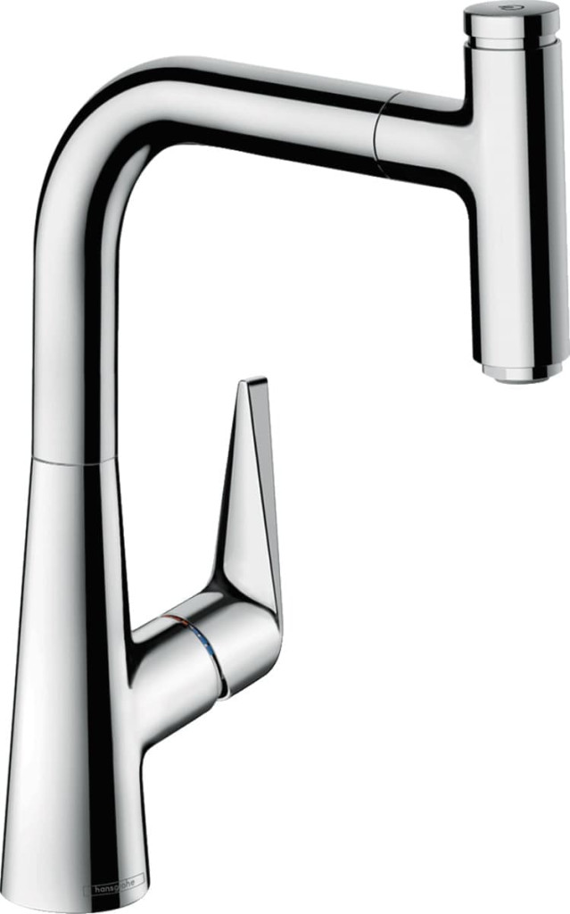 Páková kuchyňská baterie hansgrohe Talis Select M51 v chromovém provedení, s komfortní výškou 220 a vytahovacím výtokem usnadňuje kuchyňské práce mnoha užitečnými funkcemi. Ergonomický design s komfortní výškou výtoku usnadňuje každodenní kuchyňské práce a umožňuje bez problémů manipulovat i většími nádobami (ComfortZone 220).