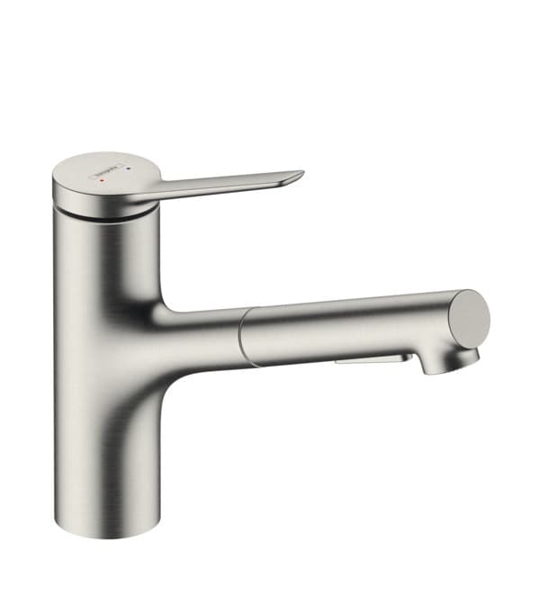 Kuchyňská baterie Zesis 150 ve vzhledu nerezu s vytahovací sprškou a dvěma typy proudu je vaší první volbou, když přijde na jednoduchou výměnu nebo první montáž. Elegantní baterie do kuchyně vám usnadní každodenní práci díky užitečným funkcím a udělá na vás dojem pověstnou kvalitou od hansgrohe.