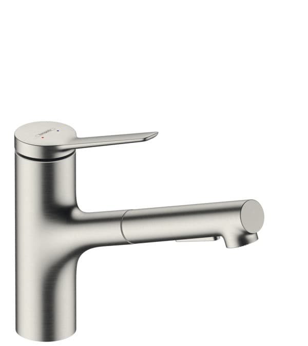 Kuchyňská baterie Zesis 150 v provedení z nerezové oceli s vytahovací sprškou, dvěma typy proudu a sBox lite je vaší první volbou, když přijde na jednoduchou výměnu nebo první montáž. Tato elegantní kuchyňská baterie vám usnadní každodenní práci díky svým užitečným funkcím a pověstné kvalitě hansgrohe.