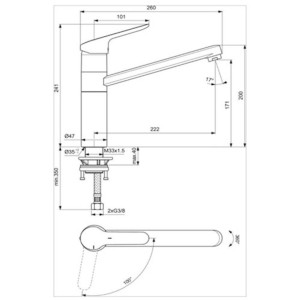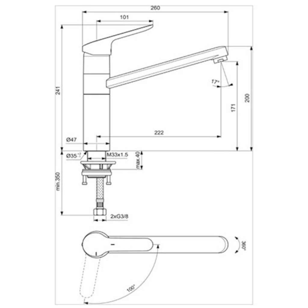 Dotaz na produkt Na splátky ještě dnesCeraflex kuchyňská baterie s vysokým vývodem a otočným ramenem, DN 15. „BlueStart“ - páka ve středové pozici = studená voda. Vývod 222 mm. Výška vývodu 171 mm. S flexibilními hadicemi G3/8. Kovová ovládací páka. Montáž zespodu - EASY-FIX. CLICK- kartuše 38 mm s keramickými disky. Pivot kartuše z nerez oceli. Rozsah otáčení páky 100°. Integrovaný zásobník maziva (vhodné pro potravinářské použití). Integrovaný omezovač teplé vody. Životnost testována dle EN 817. Ochrana proti hluku DIN 4109, třída 1.