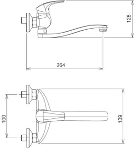 PARAMETRY:Balení: 1 ksHmotnost balení: 1,80  kgDruh výrobku: dřezová baterie Materiál: mosaz Barva popisná: chrom Barva základní: chrom Typ baterie: nástěnná Ovládání: páková Rozteč: 100 mm Délka...