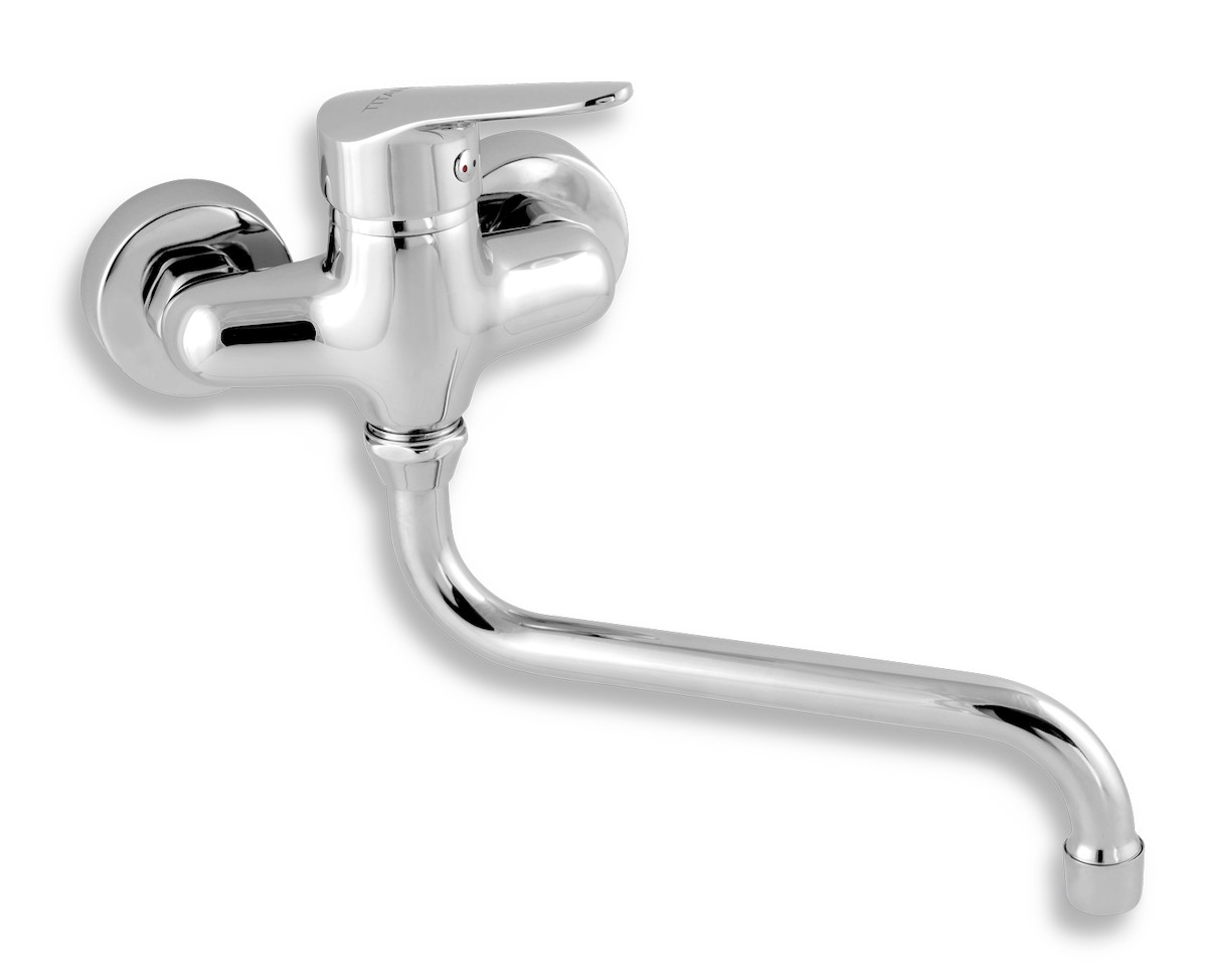 PARAMETRY:Balení: 1 ksHmotnost balení: 1,20  kgDruh výrobku: dřezová baterie Materiál: mosaz Barva popisná: chrom Barva základní: chrom Design: oblý Typ baterie: nástěnná Ovládání: páková Rozteč: 100...