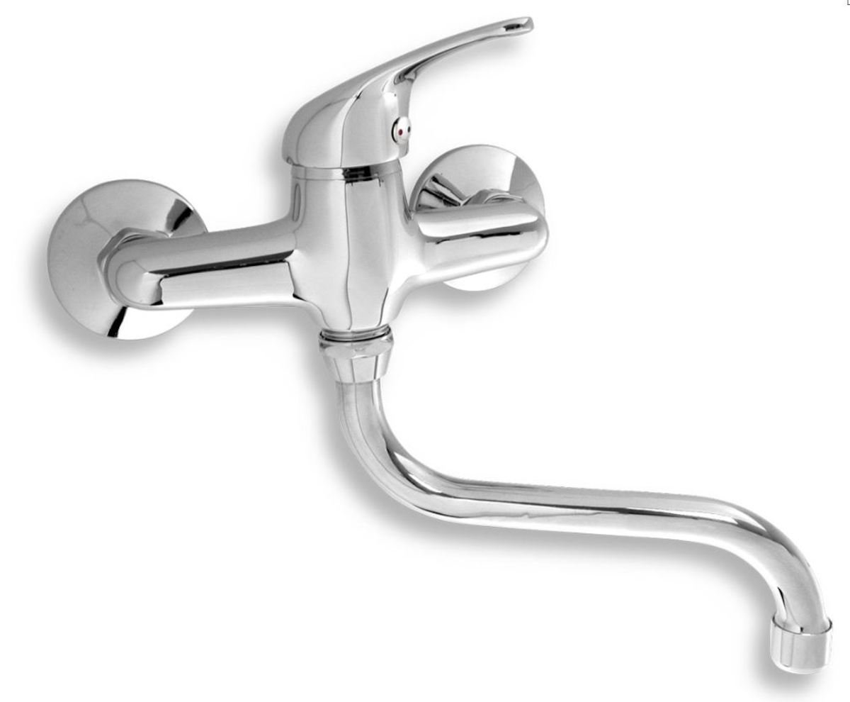 PARAMETRY:Balení: 1 ksHmotnost balení: 1,30  kgDruh výrobku: dřezová baterie Materiál: mosaz Barva popisná: chrom Barva základní: chrom Design: oblý Typ baterie: nástěnná Ovládání: páková Rozteč: 150...