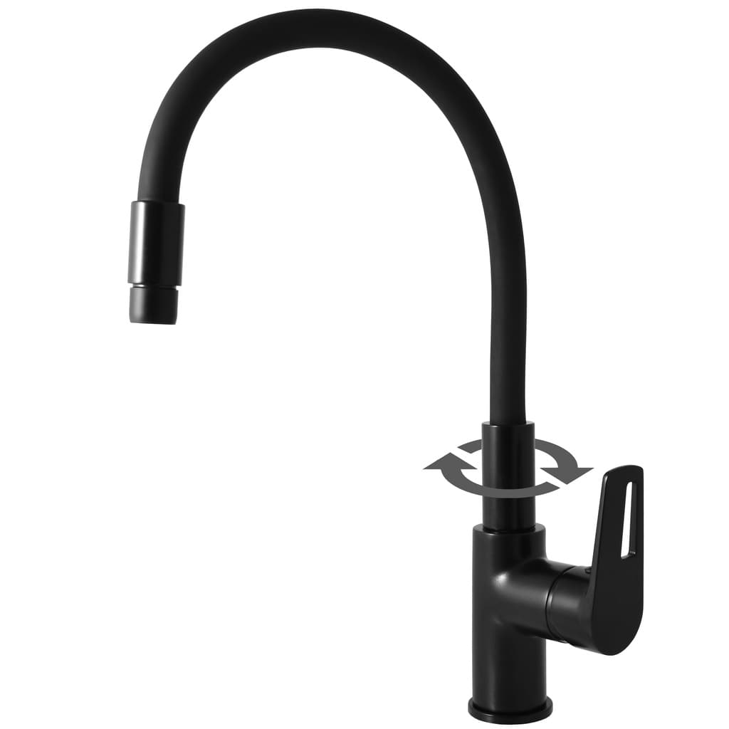 PARAMETRY:Balení: 1 ksHmotnost balení: 2  kgDruh výrobku: dřezová baterie Materiál: mosaz Barva popisná: černá Barva základní: černá lesk/mat: mat Typ baterie: stojánková Ovládání: páková Výška...