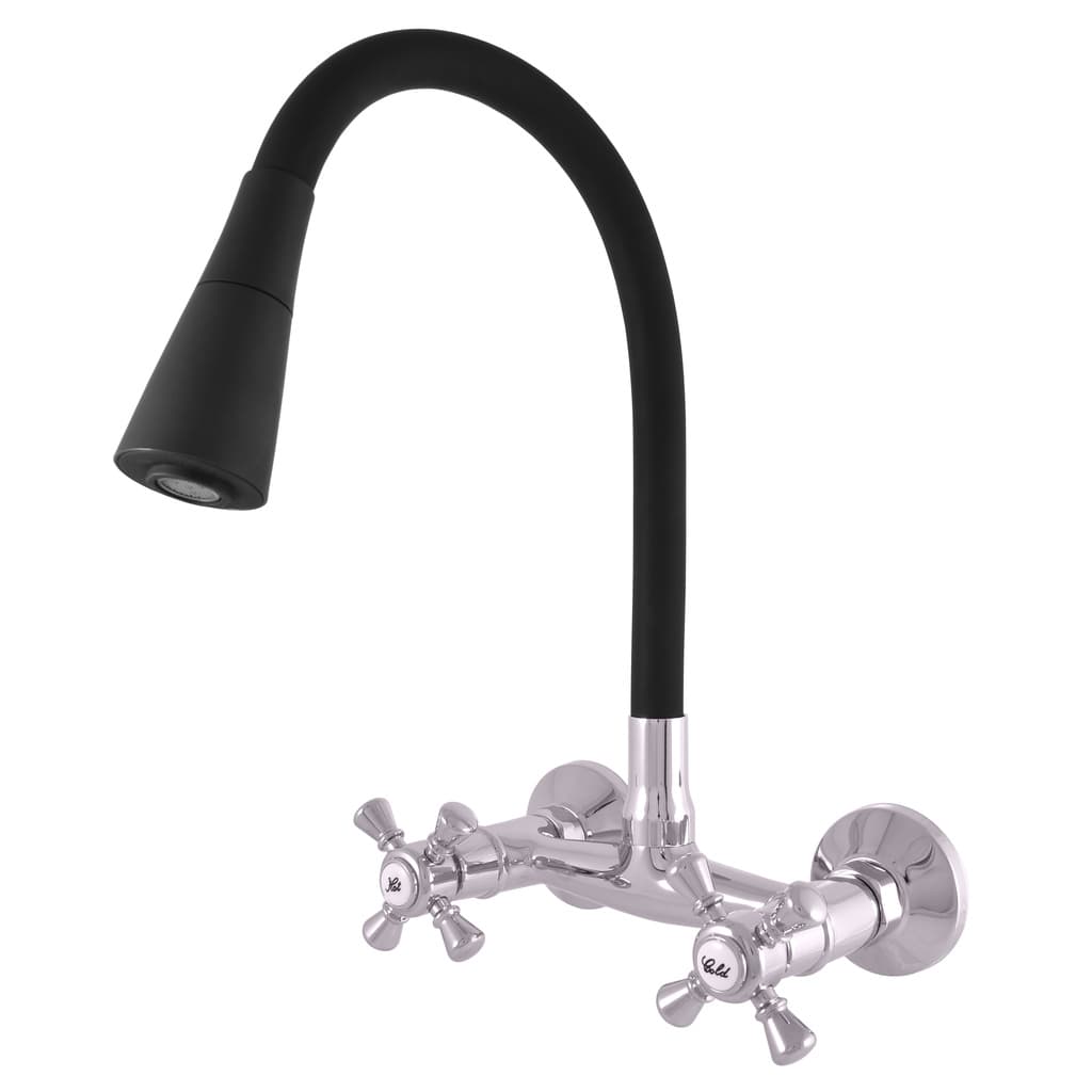 Vodovodní baterie dřezová nástěnná s flexibilním otočným ramínkem se sprchou.