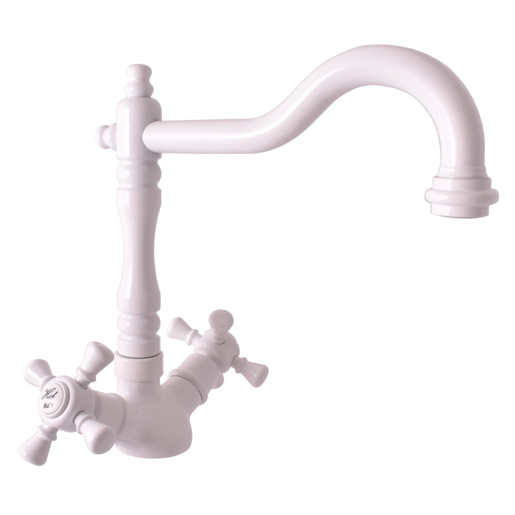 PARAMETRY:Balení: 1 ksHmotnost balení: 1,10  kgDruh výrobku: dřezová baterie Materiál: mosaz Barva popisná: bílá Barva základní: bílá lesk/mat: lesk Typ baterie: stojánková Ovládání:...