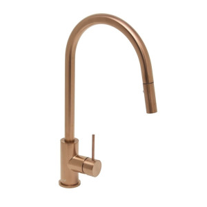 PARAMETRY:Balení: 1 ksHmotnost balení: 2,200  kgDruh výrobku: dřezová baterie Materiál: nerez Barva popisná: broušená rose gold Barva základní: bronz Design: kulatý Výbava: s vytahovací sprškou, 2...