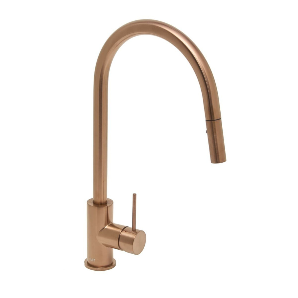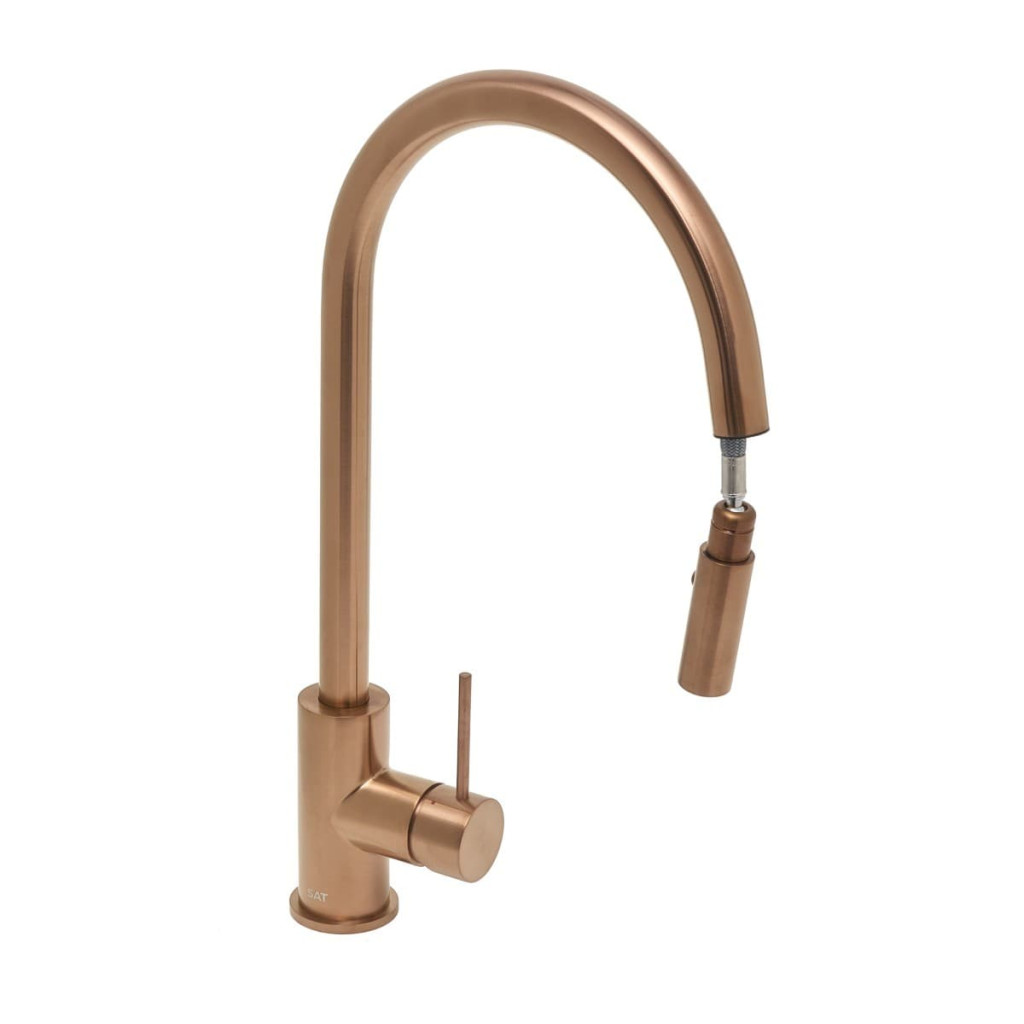 Dřezová baterie SAT Aurum s vytahovací sprškou, 2 proudy broušená rose gold SATBAUR286BRG