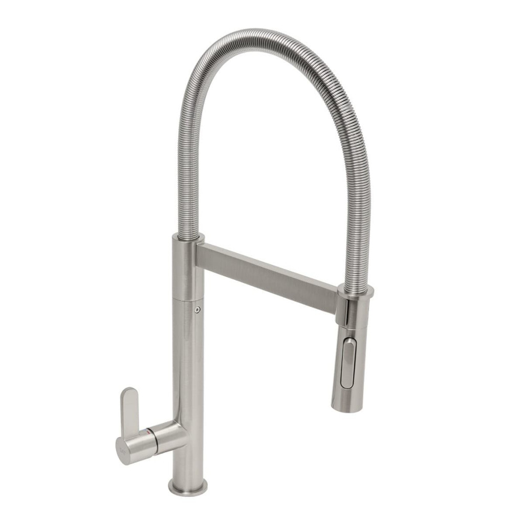 PARAMETRY:Balení: 1 ksDruh výrobku: dřezová baterie Materiál: mosaz Barva popisná: nerez Barva základní: nerez Výbava: s otočným ramínkem, 2 proudy lesk/mat: mat Typ baterie: stojánková Ovládání:...