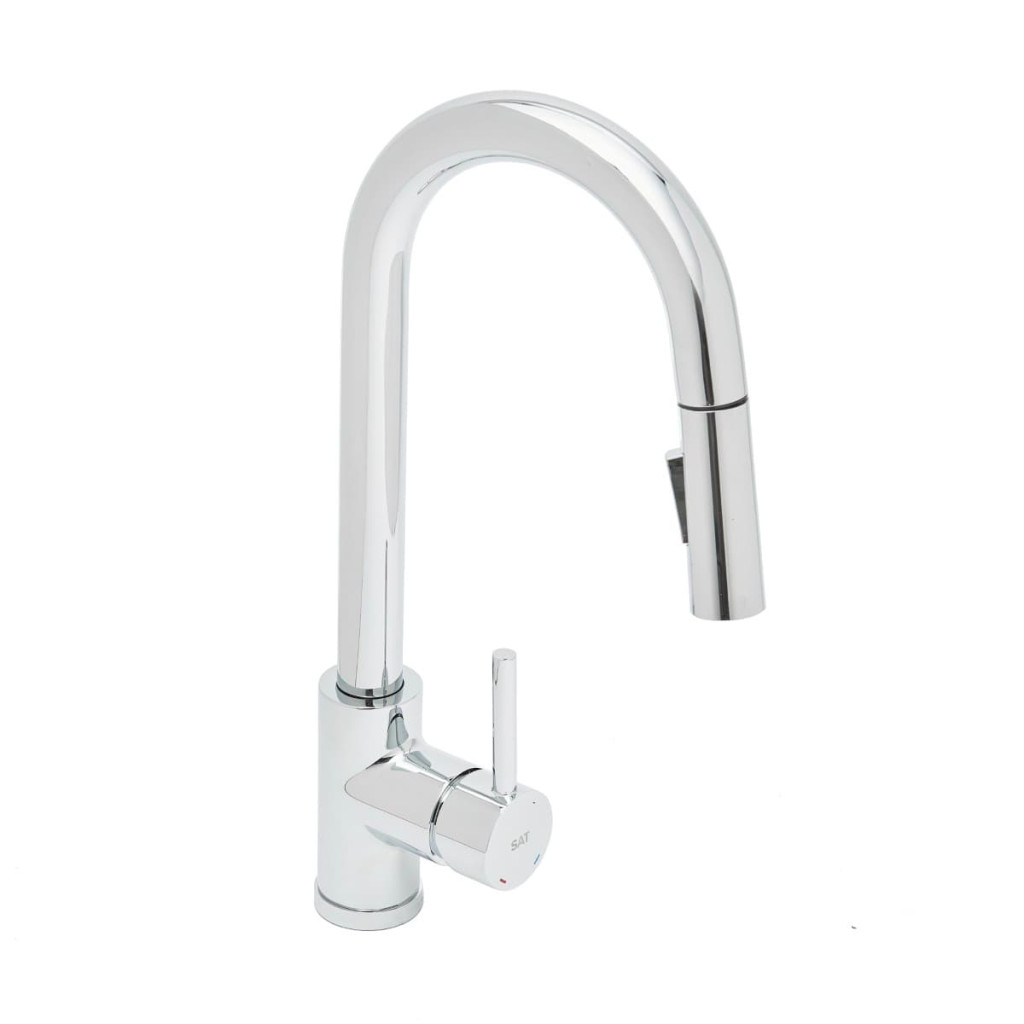 Naše dřezová baterie SAT s vytahovací sprškou představuje ideální řešení pro kuchyně, kde je dřez umístěn před oknem. Díky inovativnímu designu je možné baterii snadno vysunout ze základny, což umožňuje bezproblémové otevření okna a zároveň zachovává maximální funkčnost a estetiku vaší kuchyně.