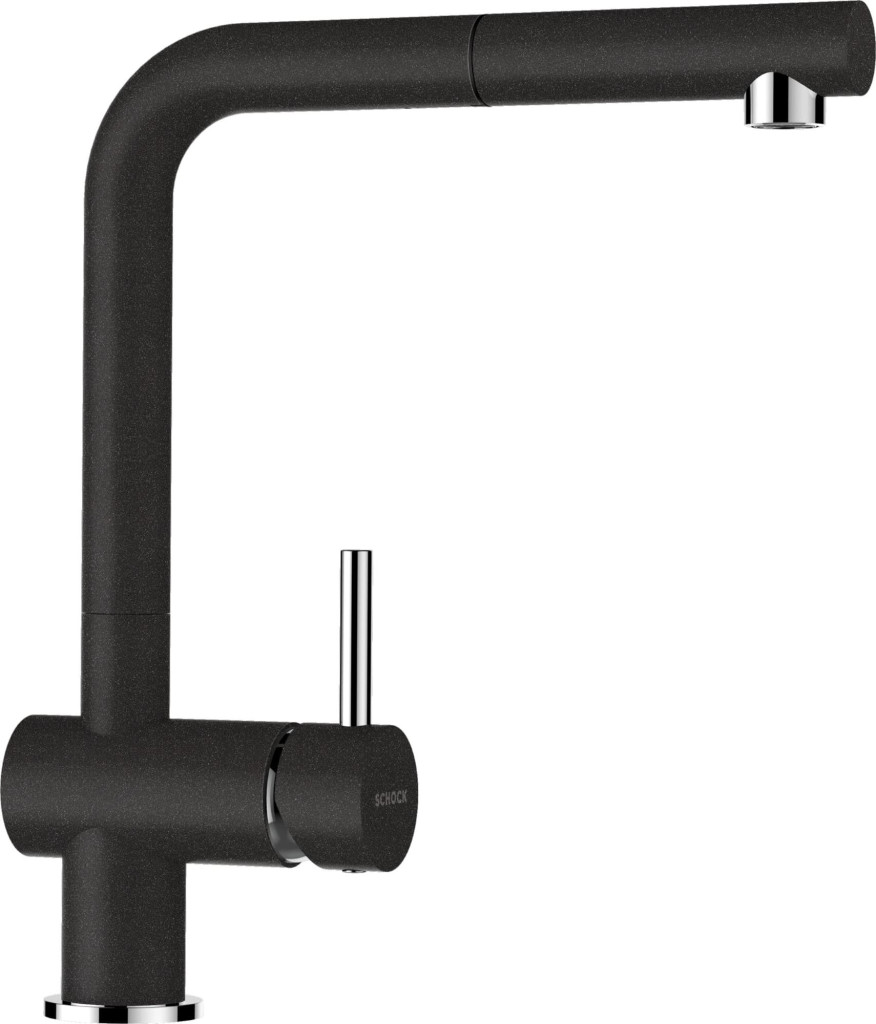 PARAMETRY:Druh výrobku: dřezová baterie Materiál: kov Barva popisná: černá Typ: stojící Typ baterie: stojánková Ovládání: páková Výška baterie: 31  cmZnačka: Schock Záruční lhůta: 2 roky Výška: 31 ...
