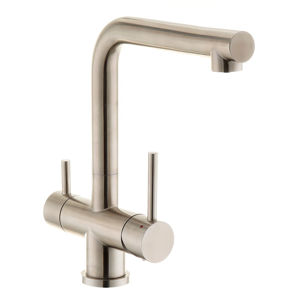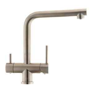 Dotaz na produkt Na splátky ještě dnesTřícestná dřezová baterie SIKO v moderním designu a v nerezovém provedení je primárně určena do domácností pro rozdělení na užitkovou a filtrovanou (upravenou) vodu. Baterie má v perlátoru 2 vyústění, přičemž menší páka slouží k puštění filtrované (upravené) vody.