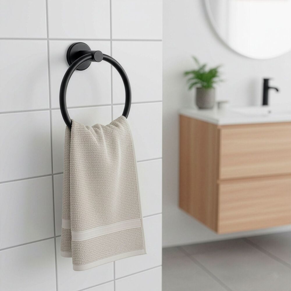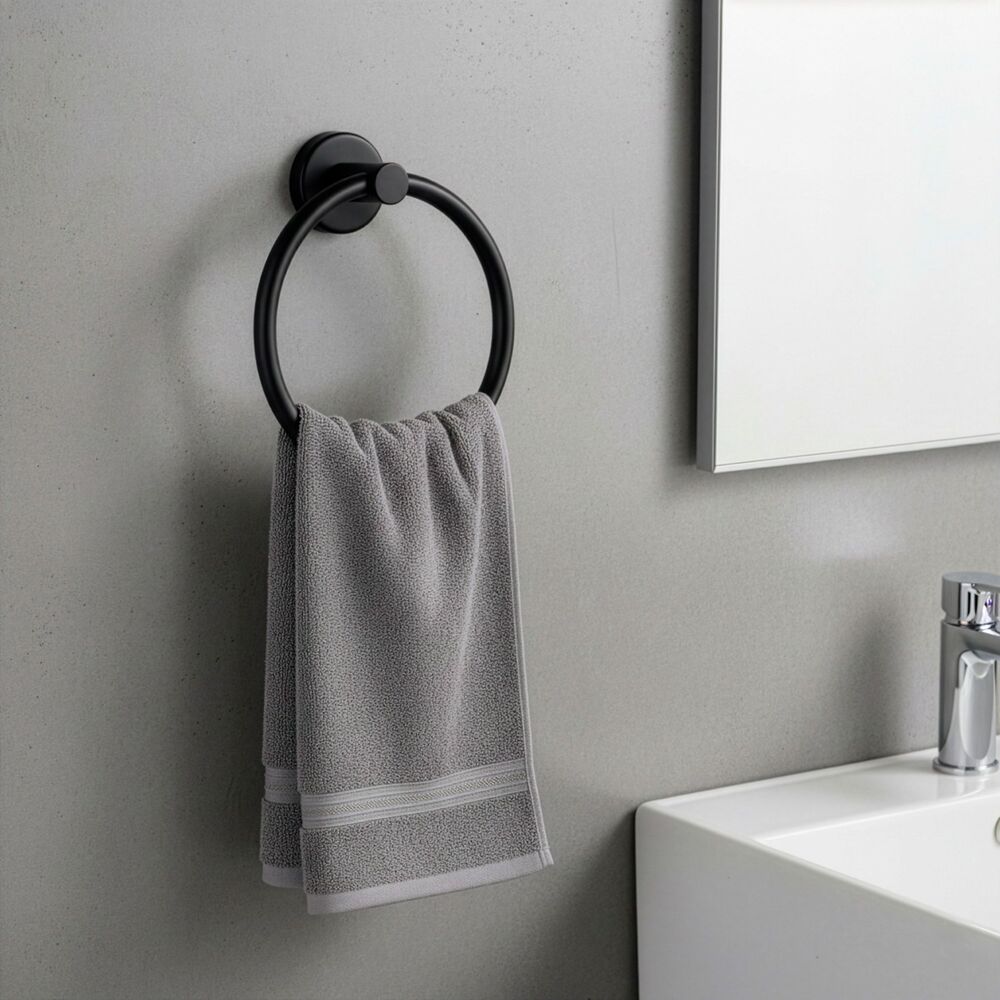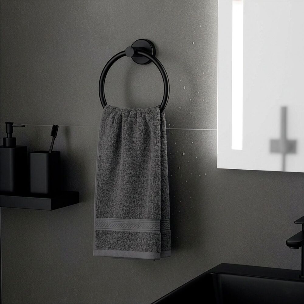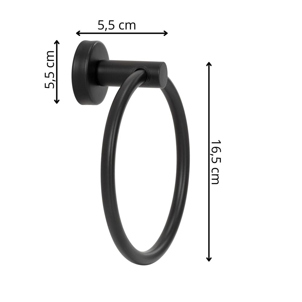 Elegantní kruhový držák na ručník v matném černém provedení je praktickým doplňkem do každé koupelny. Nabízí pohodlné zavěšení ručníků a pomáhá udržet prostor přehledný a organizovaný. Pevné kovové provedení zajišťuje stabilitu při každodenním používání, zatímco nadčasový design se snadno sladí s moderním i klasickým interiérem. Montáž je jednoduchá díky přiloženému příslušenství.