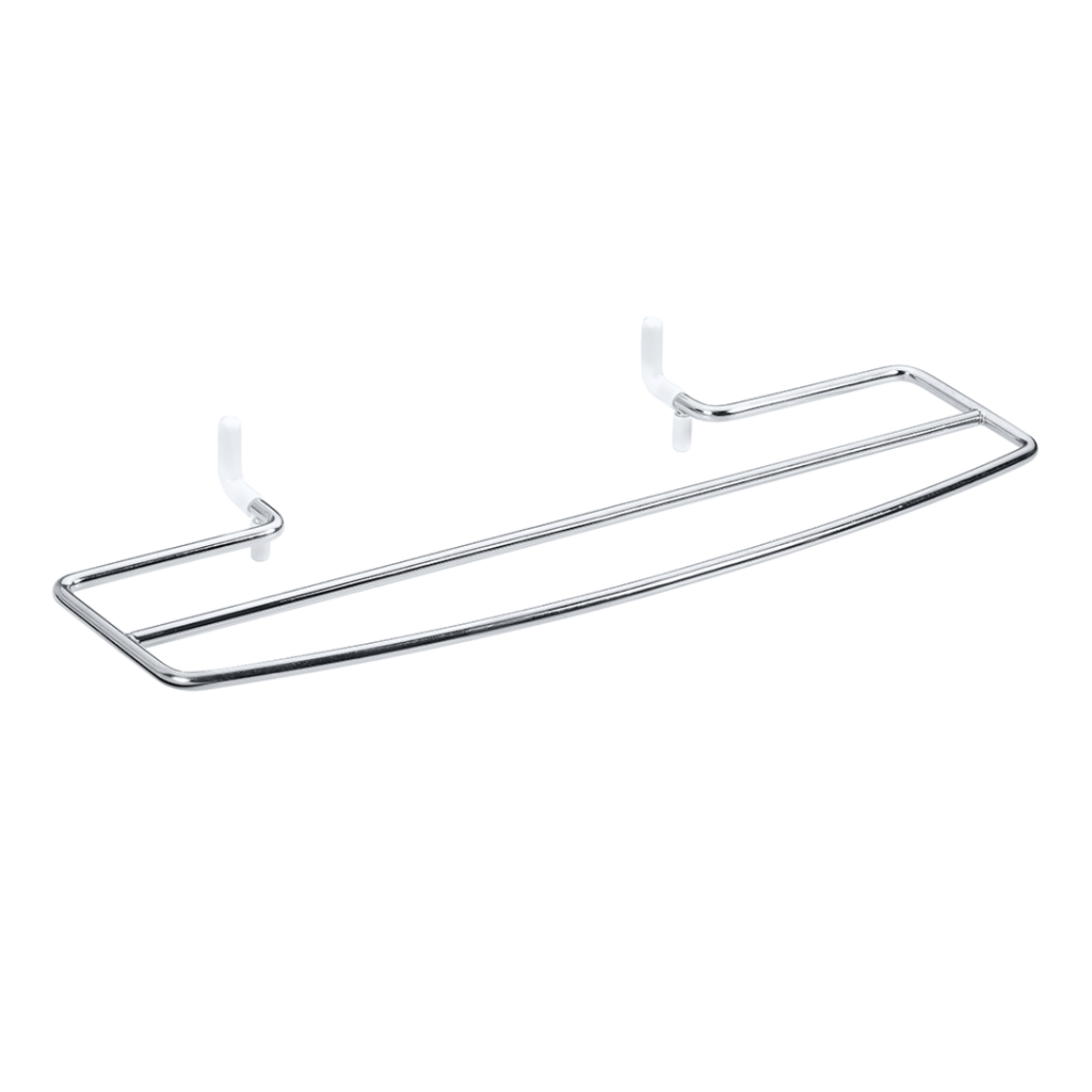 Dvojitý sušák ručníků na koupelnové radiátory v chromovém lesklém provedení o délce 60 cm. Jednoduché nasazení na žebříková otopná tělesa bez jakéhokoliv nářadí.