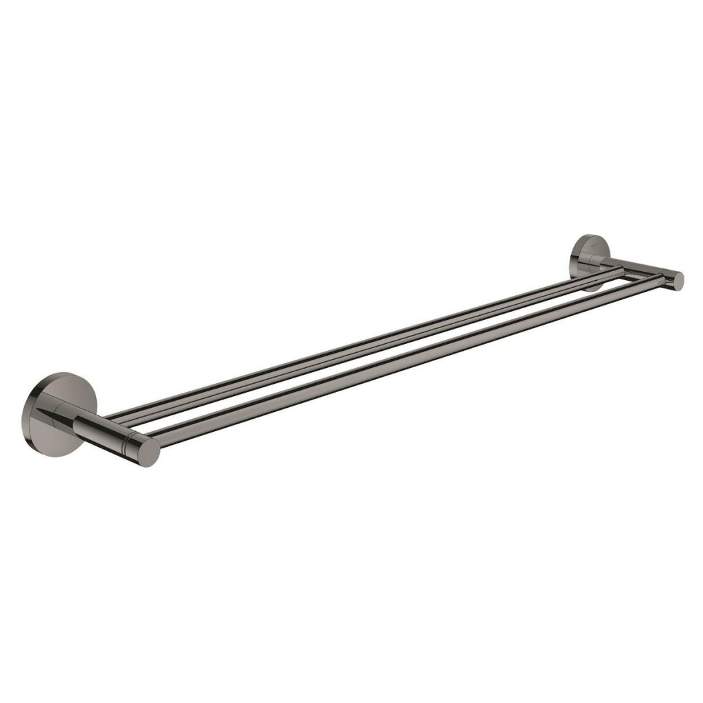 Dvojitá závěsná tyč na ručníky GROHE Essentials (600 mm). Německá výroba, vysoce kvalitní kov s povrchovou úpravou Hard Graphite a podomítkové upevnění.