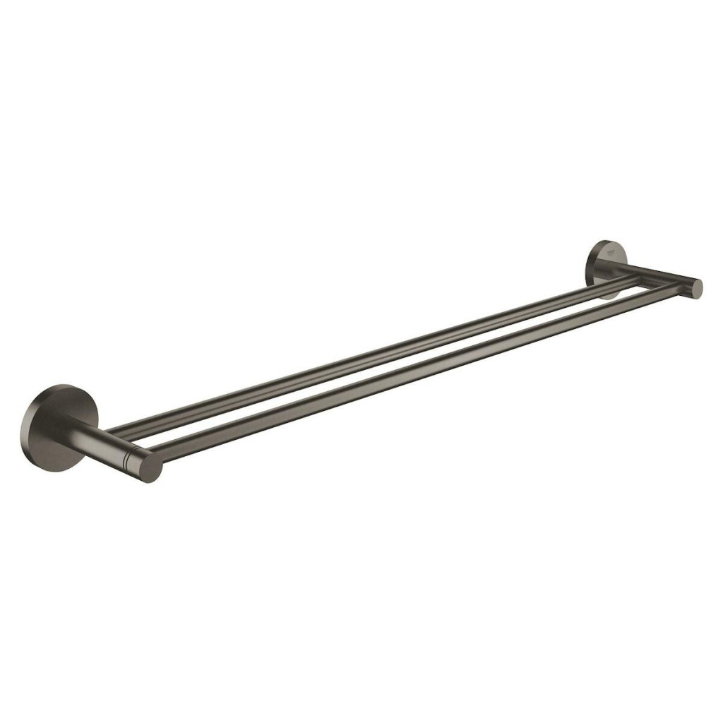 Dvojitá závěsná tyč na ručníky GROHE Essentials (600 mm). Německá výroba, vysoce kvalitní kov s povrchovou úpravou Brushed Hard Graphite a podomítkové upevnění.