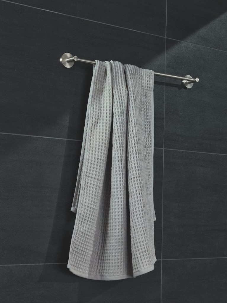Držák na ručníky GROHE Essentials (600mm). Německá výroba, vysoce kvalitní kov s nerezovou povrchovou úpravou a podomítkové upevnění.