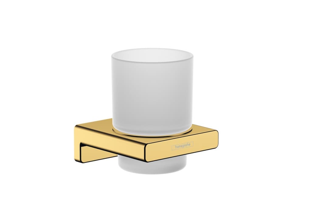 A kvalita hansgrohe je příslibem vynikajícího designu: Pohárek na zubní kartáček AddStoris je vyroben ze skla (94x68 mm). Tento výrobek představuje šetrné využití zdrojů a snižuje množství plastů v koupelnách. Kovová povrchová úprava držáku na stěnu ve vzhledu leštěného zlata se snadno čistí a je jedním z barevných programů řady speciálních povrchových úprav hansgrohe pro baterie (FinishPlus). Aby všechno dokonale ladilo.