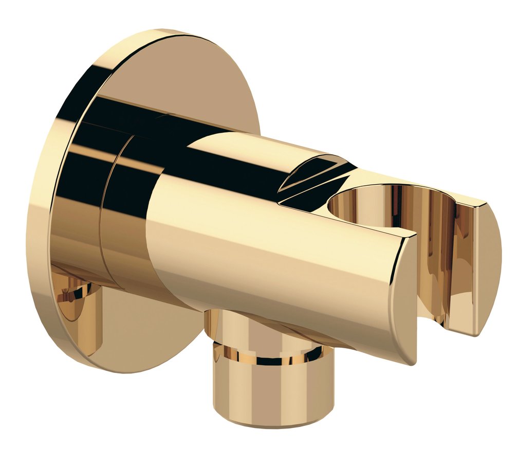 Držák sprchy kulatý, pevný, s vyústěním, zlato