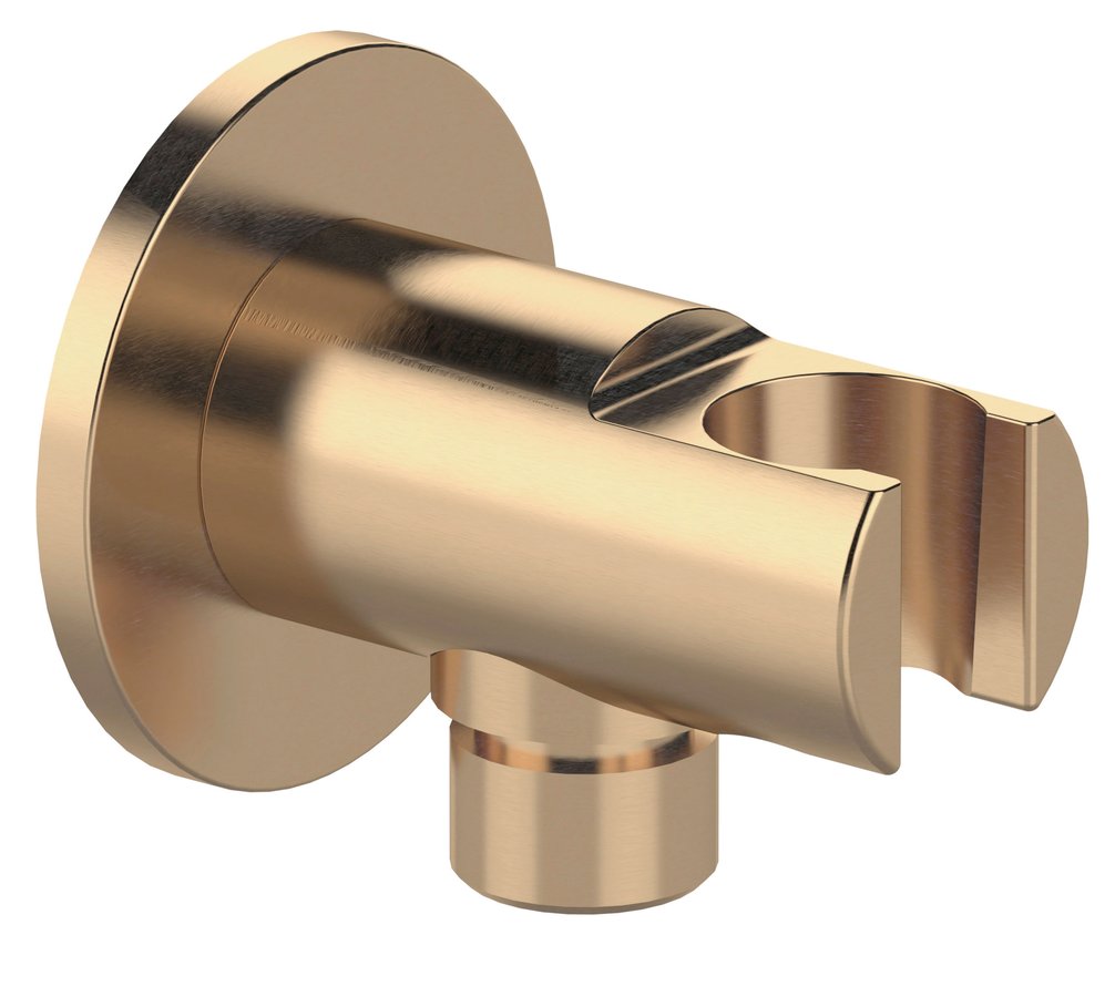 Držák sprchy kulatý, pevný, s vyústěním, zlato mat