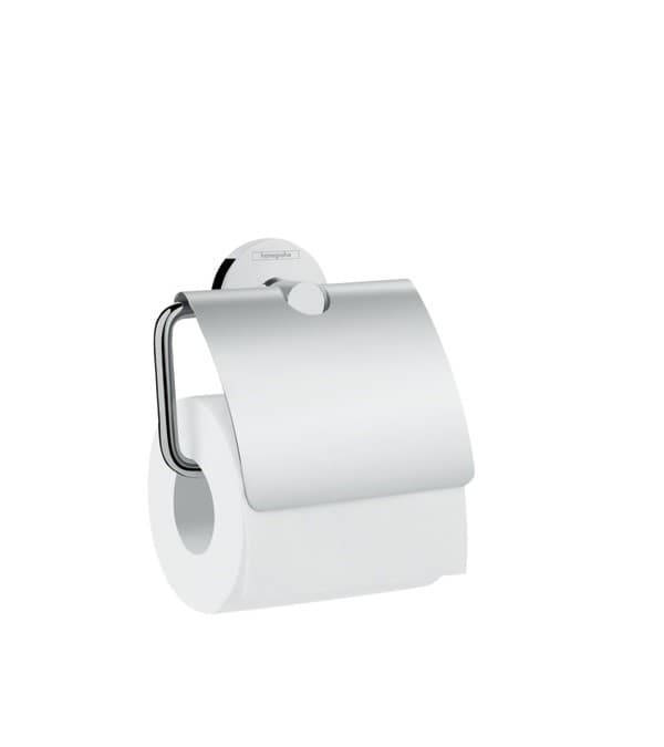 Univerzální držák na role papíru s víkem Logis zajišťuje bezpečnou manipulaci díky svému ergonomickému tvaru a svým lesklým chromovaným povrchem nastavuje ve vaší koupelně nadčasové designové akcenty.