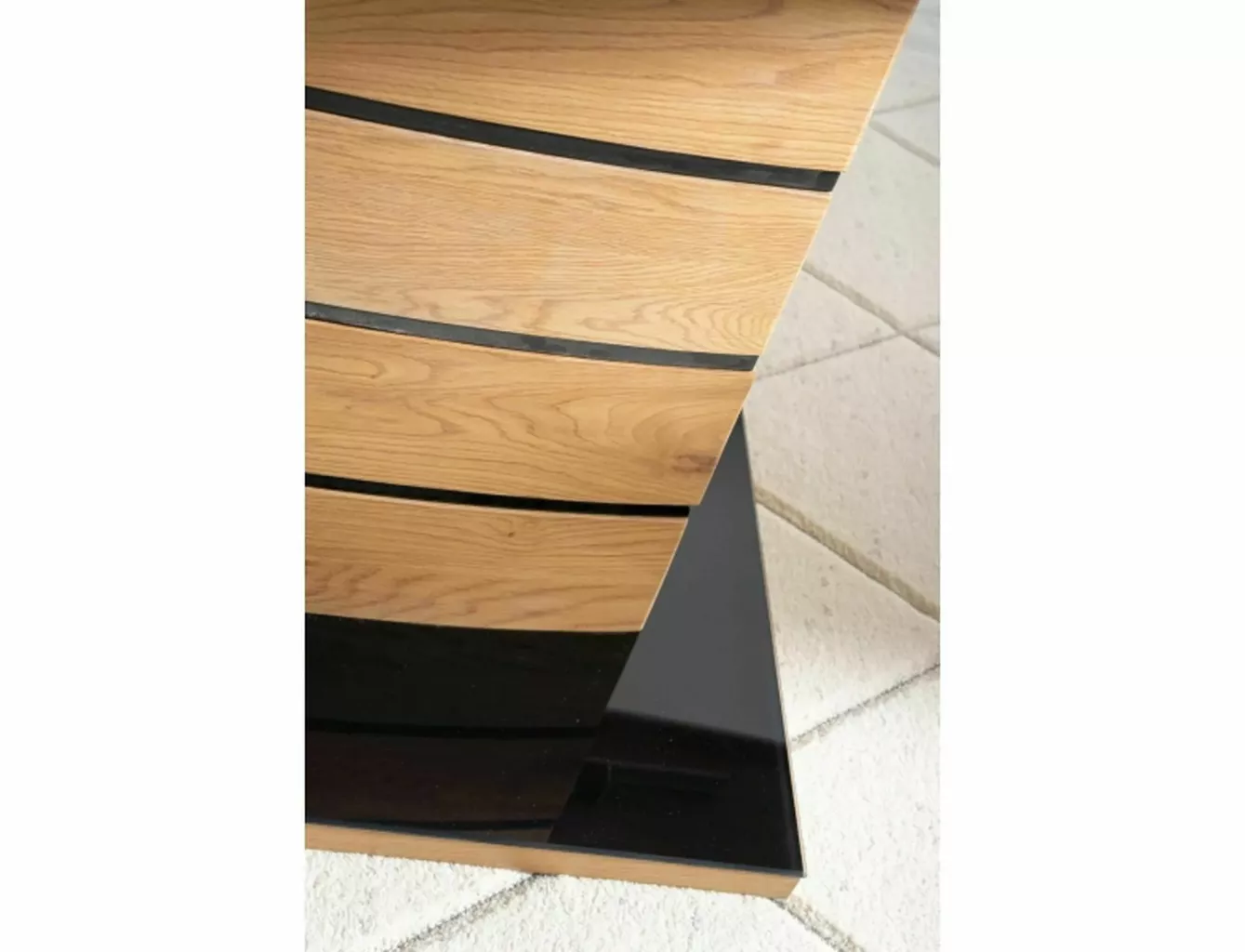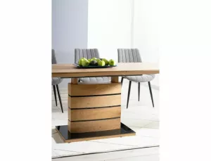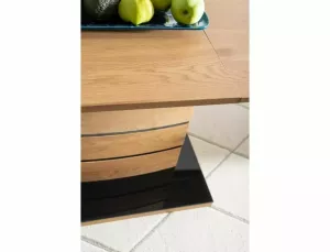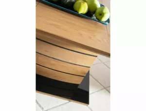 vrchní deska: MDF+dýha, rám: MDF+nerezová ocel, barva: dub