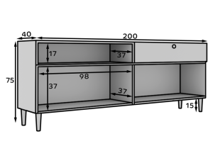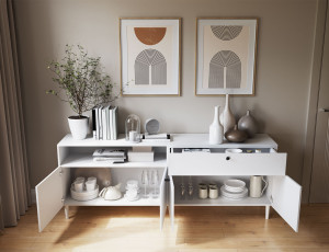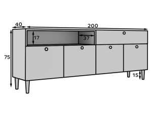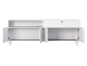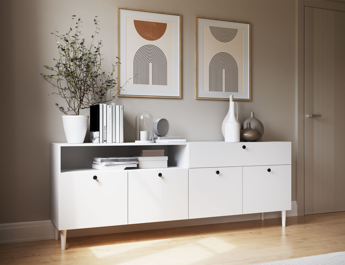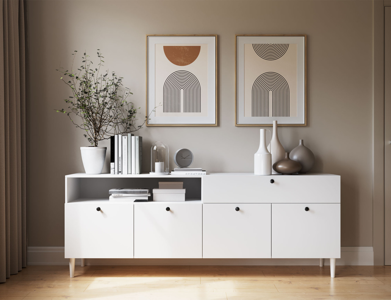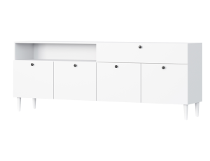 Dotaz na produkt Na splátky ještě dnesPříborník Dullum je elegantní a praktický kus nábytku s rozměry 40 cm do hloubky, 200 cm do šířky a 75 cm do výšky. Tloušťka desky je 16 mm, což zajišťuje pevnou a odolnou konstrukci. Je vybaven kuličkovým vedením, které umožňuje plynulý a spolehlivý chod zásuvek. Nosnost každé skříňky je 3 kg, takže je vhodná pro uložení různých předmětů při zachování stability a funkčnosti.Látky: Bílá