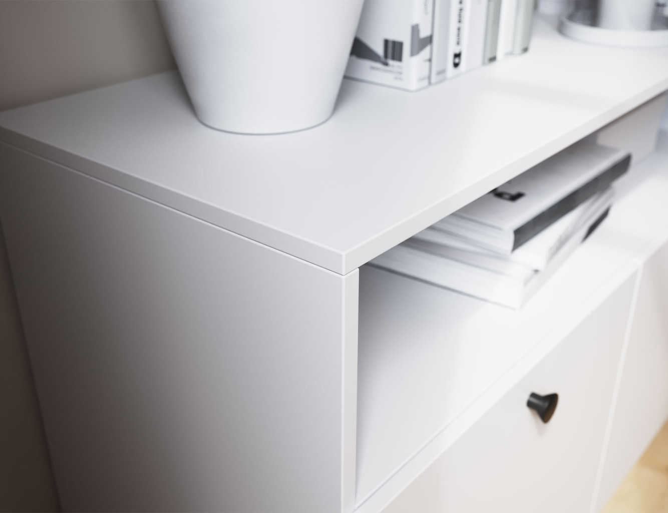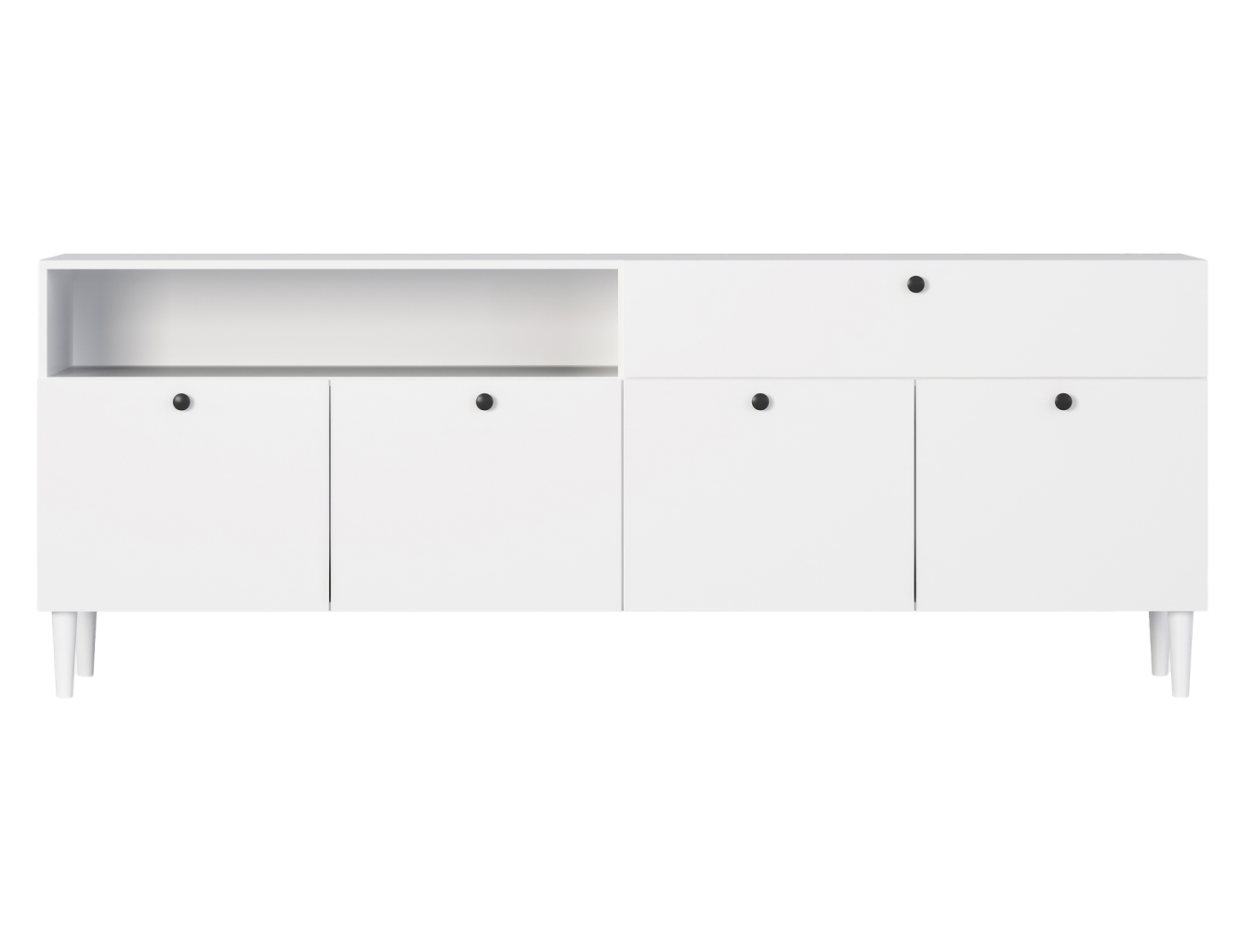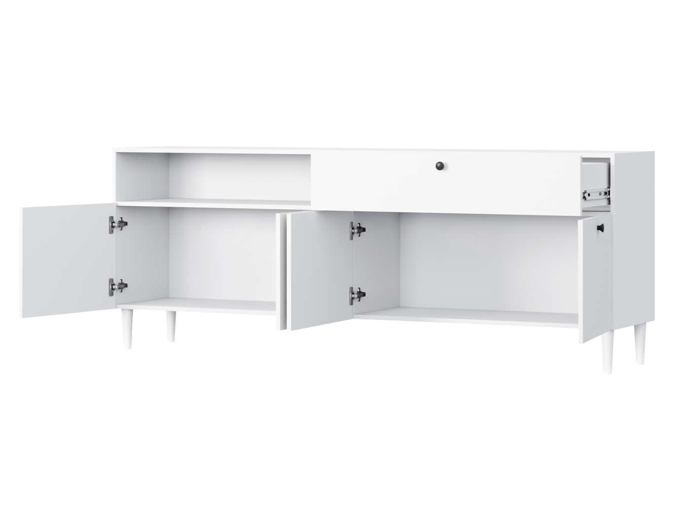 Dotaz na produkt Na splátky ještě dnesPříborník Dullum je elegantní a praktický kus nábytku s rozměry 40 cm do hloubky, 200 cm do šířky a 75 cm do výšky. Tloušťka desky je 16 mm, což zajišťuje pevnou a odolnou konstrukci. Je vybaven kuličkovým vedením, které umožňuje plynulý a spolehlivý chod zásuvek. Nosnost každé skříňky je 3 kg, takže je vhodná pro uložení různých předmětů při zachování stability a funkčnosti.Látky: Bílá