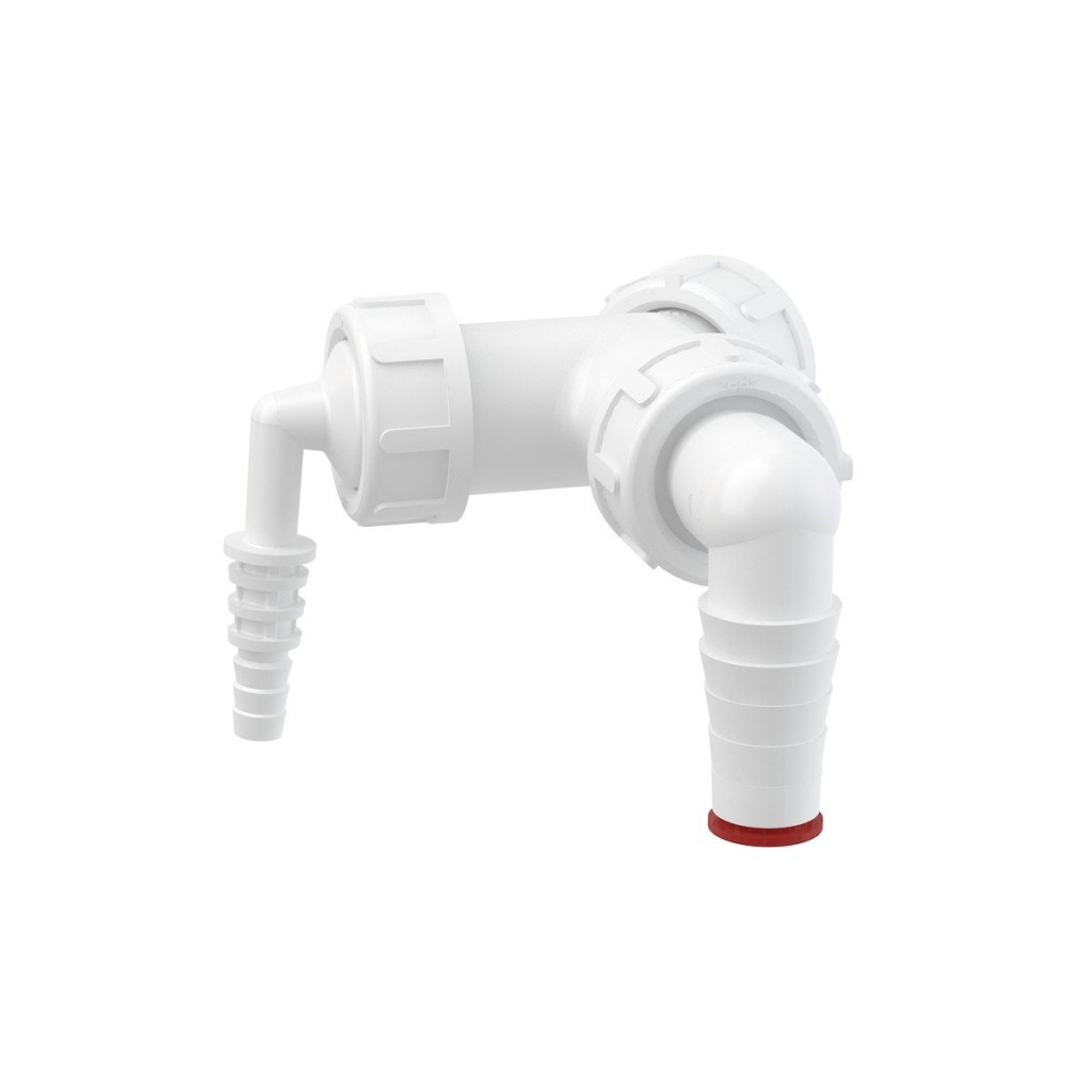 Dvě kolínka k napojení spotřebičů – pračky, myčky, sušičky, kotle, klimatizace, rekuperace, atd.; Zpětná klapka zabraňuje zpětnému proudění vody, toto řešení je vhodné pro systémy, které namají vlastní zpětné klapky; Přepážky usměrňující tok vody zabraňují proudění vody do druhého kolínka; Matice G1" pro napojení na sifon; Zátka kolínka slouží k zaslepení kolínka, pokud není používáno; Materiál: polypropylen
