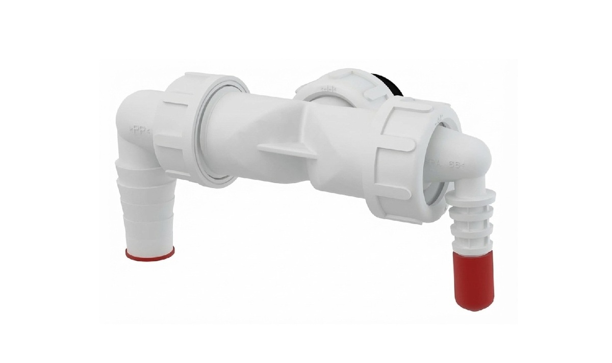Dvě kolínka k napojení spotřebičů – pračky, myčky, sušičky, kotle, klimatizace, rekuperace, atd.; Zpětná klapka zabraňuje zpětnému proudění vody, toto řešení je vhodné pro systémy, které namají vlastní zpětné klapky; Přepážky usměrňující tok vody zabraňují proudění vody do druhého kolínka; Matice G1" pro napojení na sifon; Zátka kolínka slouží k zaslepení kolínka, pokud není používáno; Materiál: polypropylen