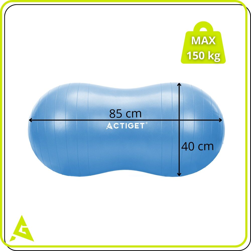 Dvojitý gymnastický míč Peanut ACTIGET ACT0150 modrý je ideální pomůckou pro rehabilitační, stabilizační i protahovací cvičení. Díky speciálnímu dvojitému tvaru poskytuje vyšší stabilitu než klasické míče, což umožňuje bezpečné a pohodlné cvičení. Pomáhá posilovat hluboké svaly a zlepšovat koordinaci.