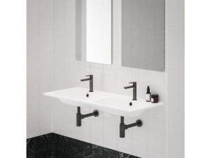 Součástí nejširšího designově sladěného konceptu na trhu. Dvojumyvadlo Chrome Slim lze instalovat na zeď nebo doplnit skříňkou pod dvojumyvadlo Chrome II SD 1200. Montážní sada (připojovací hmoždinky, vruty, atd.) včetně krytky přepadu je součástí dodávky.