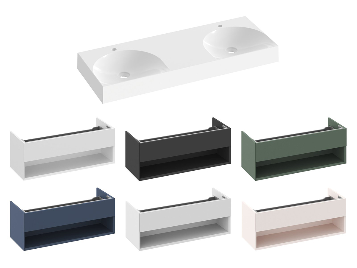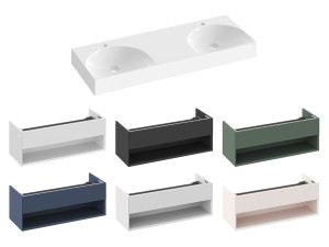 Dvojumyvadlo Lite 120 s odkládací plochou. Umyvadlo není vybaveno přepadem, proto je nutné použít pevnoé umyvadlové pilety, které zabraňují přetečení vody. Dvojumyvadlo má předvrtané otvory pro umyvadlové stojánkové baterie. Montážní sada (připojovací hmoždinky, vruty, atd.) je součástí dodávky. Montáž dvojumyvadla se provádí na skříňku SD Lite 120 nebo přímo na zeď.