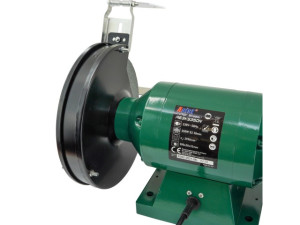 příkon 350 W, brusné kotouče 200mm se zrnitostí 36 a 60 (jemný a hrubý), stabilní kovová základna s možností upevnění k podložce, krytý vypínač, nastavitelná ochrana proti odlétajícím jiskrám