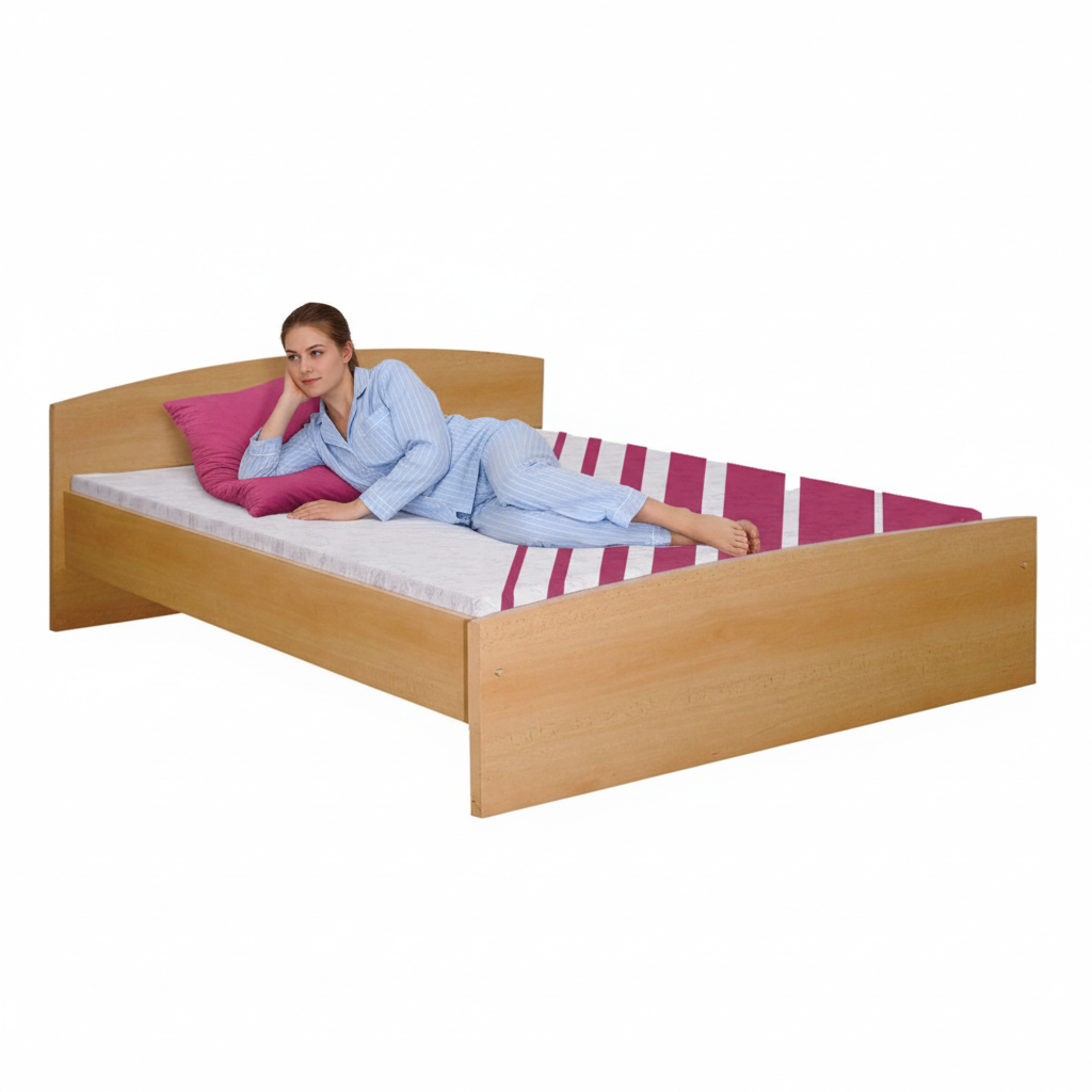 Dvoulůžko 341 buk 160×200 je sázka na jistotu. Bukový dekor působí teple a domácky, takže ložnice bude hned útulnější – a díky jednoduchým liniím se postel snadno kombinuje s komodou, nočními stolky i doplňky.