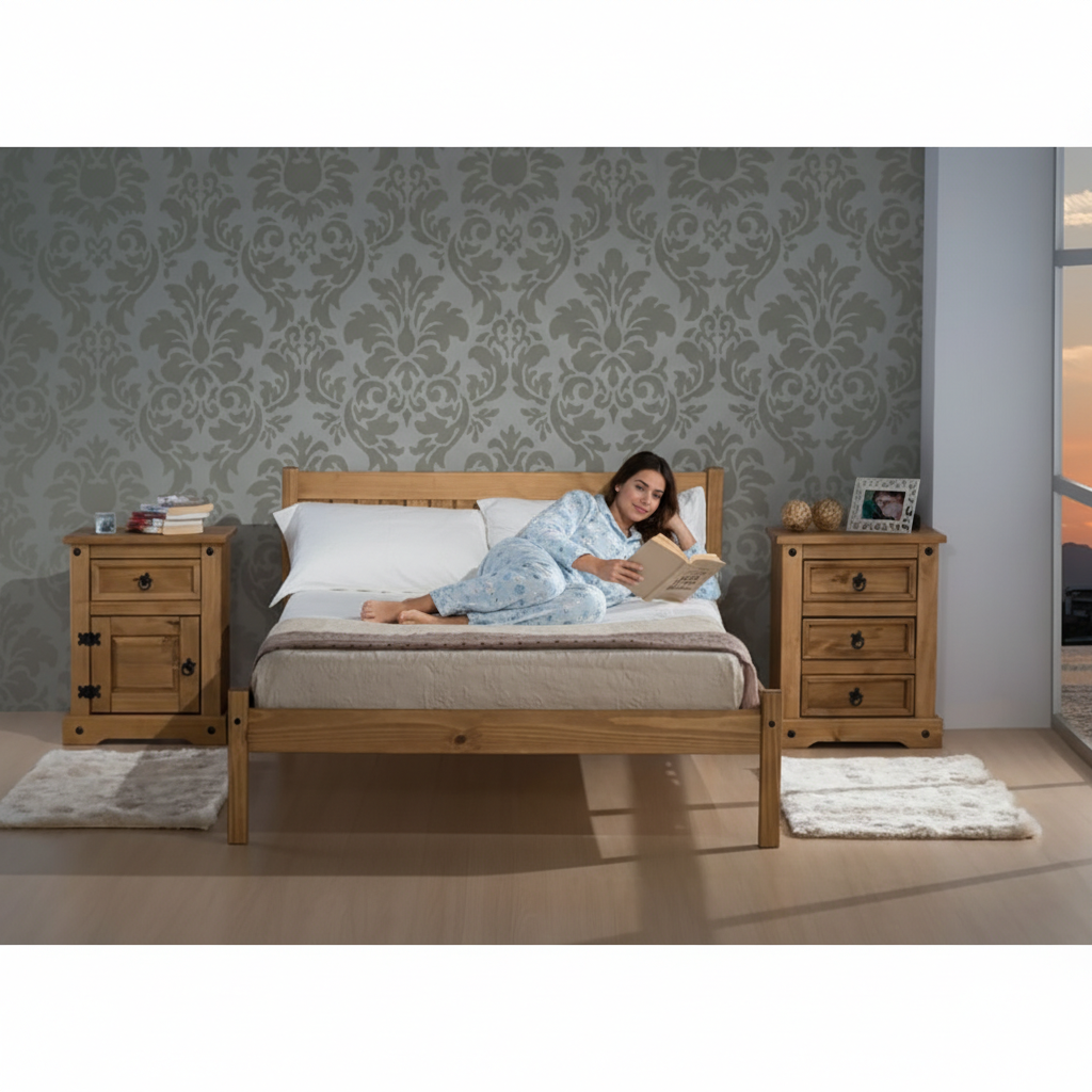 Dvoulůžko CORONA RIO 140×200 vosk zaujme přirozeným vzhledem a rustikálním stylem, který se hodí jak do bytu, tak na chalupu. Voskovaná úprava podtrhne kresbu dřeva a postel díky ní působí teple a domácky.