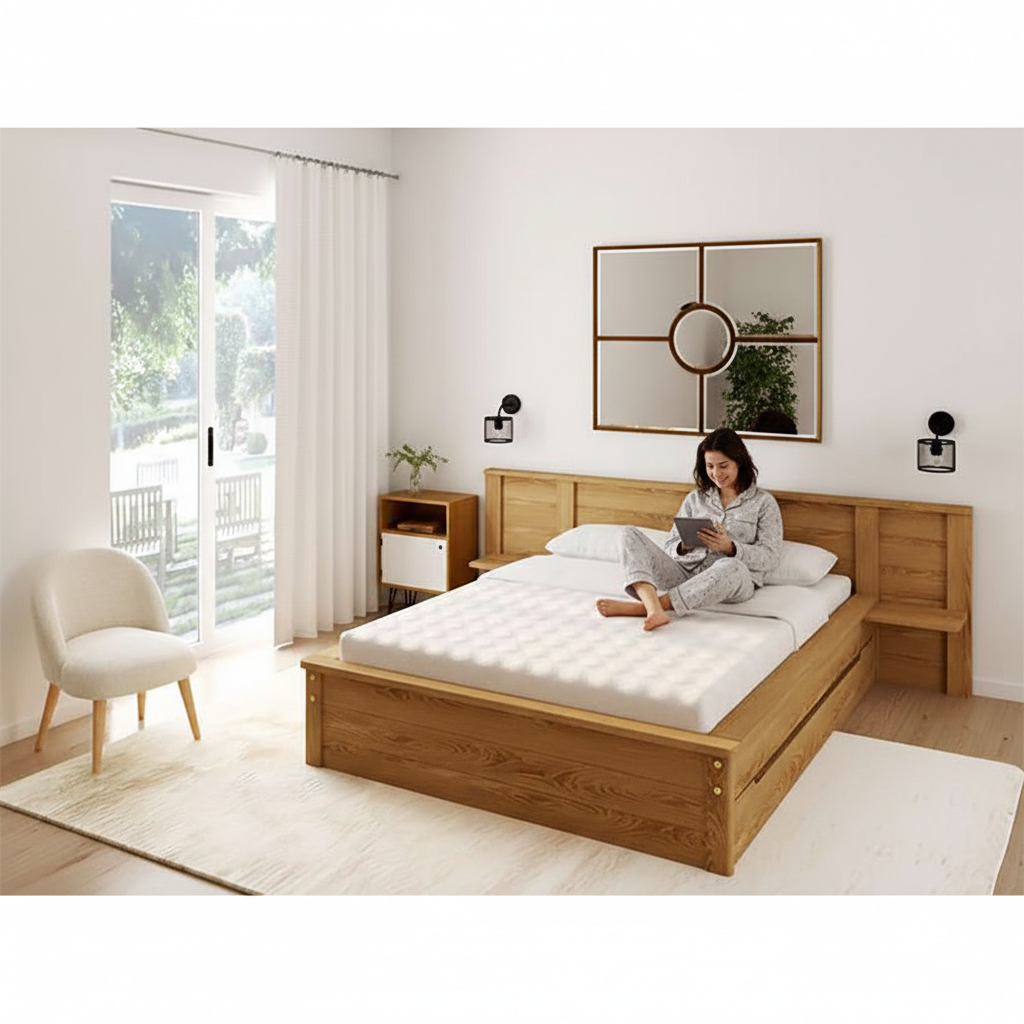 Rozměr 180×200 cm je ideální pro pohodlné spaní ve dvou (a klidně i s dětmi, když se ráno přitulí). Voskovaná úprava navíc zvýrazní přirozený vzhled dřeva a postel díky ní působí teple, domácky a útulně. Skvěle zapadne do bytu, domu i na chalupu.