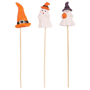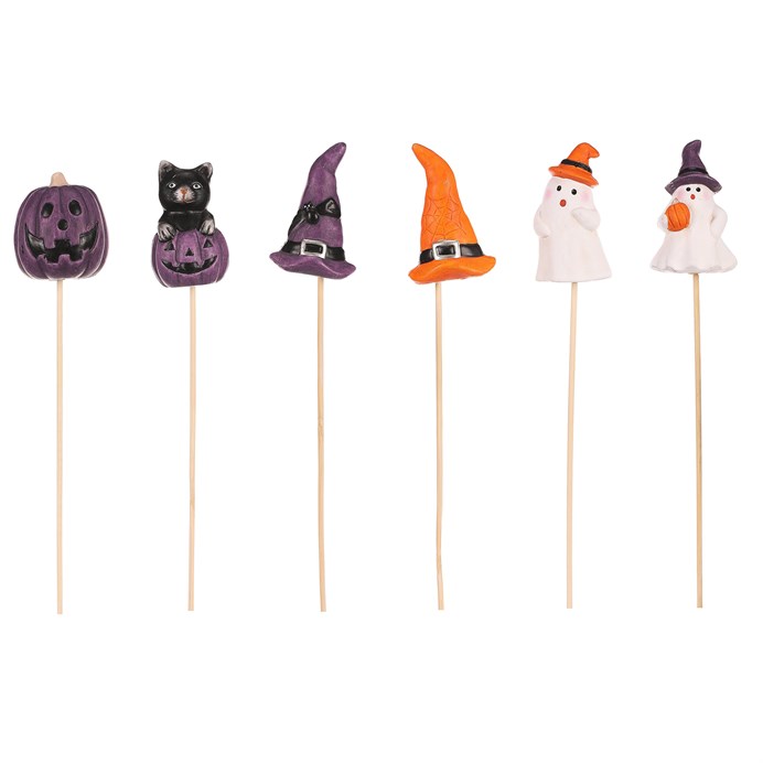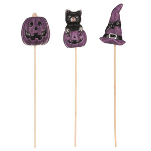Dotaz na produktOživte svou podzimní a halloweenskou výzdobu s těmito poutavými dýněmi a strašidly na zápichu. V mixu šesti druhů z keramiky najdete čarodějovy klobouky, bílé duchy a vyřezané fialové dýně, z nichž jedna dokonce hostí černou kočku. Tato typická podzimní dekorace je ideální pro vytvoření pohádkové a zároveň strašidelné atmosféry na Halloween. Umístěte je třeba do květinových aranží nebo do vázy pro okamžité zpestření svého prostoru.