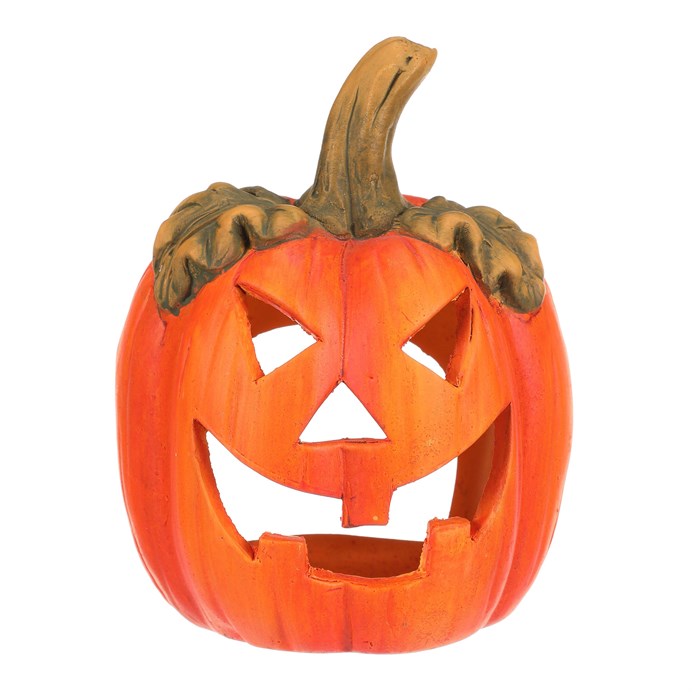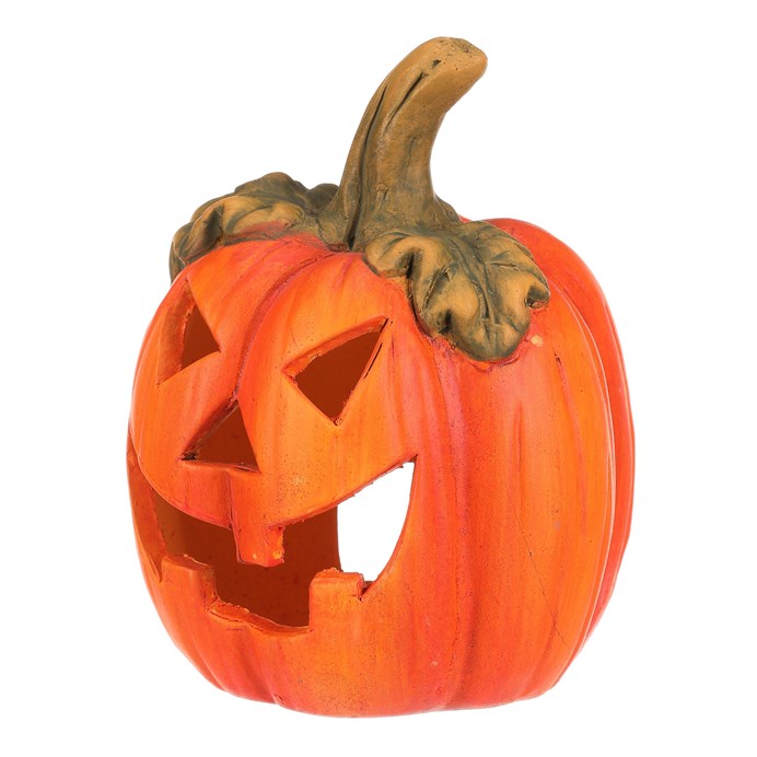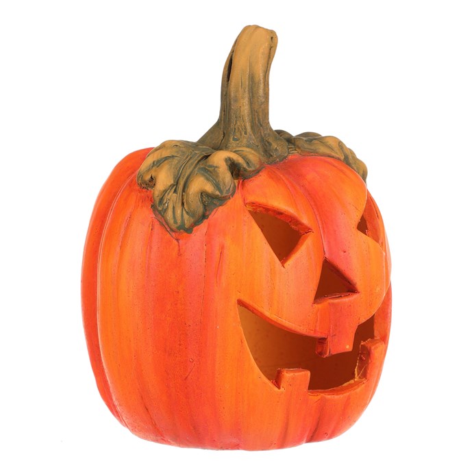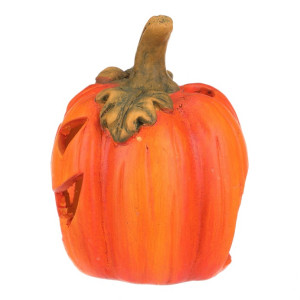 Dotaz na produktKeramická dýně s vyřezaným obličejem je typickou ozdobou pro podzim a zvláště pak Halloween. Dýně má v sobě dostatek prostoru pro vložení svíčky, čímž vytvoříte skutečně působivou atmosféru, zejména za tmy. Ve dne bude krásnou ozdobou, díky kombinaci sytě oranžové barvy se zelenými lístky a stopkou. O temných večerech a nocích, po zapálení knotu svíčky, vytvoříte jedinečný až strašidelný světelný efekt díky pronikajícím paprsků světla ven skrze všechny otvory