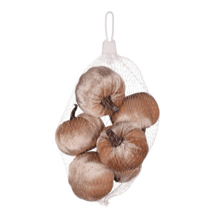 Dotaz na produktNaše umělé dýně potažené látkou v odstínu cappuccino (krémové) s hebkým povrchem jsou skvělým podzimním doplňkem pro výzdobu jakéhokoli interiéru. Balené jsou po 6 kusech v síťce, všechny ve stejných velikostech i barvách, a nabízejí nekonečné možnosti aranžování. S jejich všestranností a příjemným vzhledem jsou ideální pro vytvoření hřejivé podzimní atmosféry. Nejen, že tyto tykvovité plody dobře vypadají, ale navíc jsou velmi příjemné na dotek. Můžete je snadno kombinovat s dalšími ozdobami dle fantazie a schopností, tak aby zrovna ta vaše výzdoba byla jedinečná a originální. S jejich trvanlivostí se nemusíte bát, že by se zkazily, a můžete je používat opakovaně i v dalších sezónách.