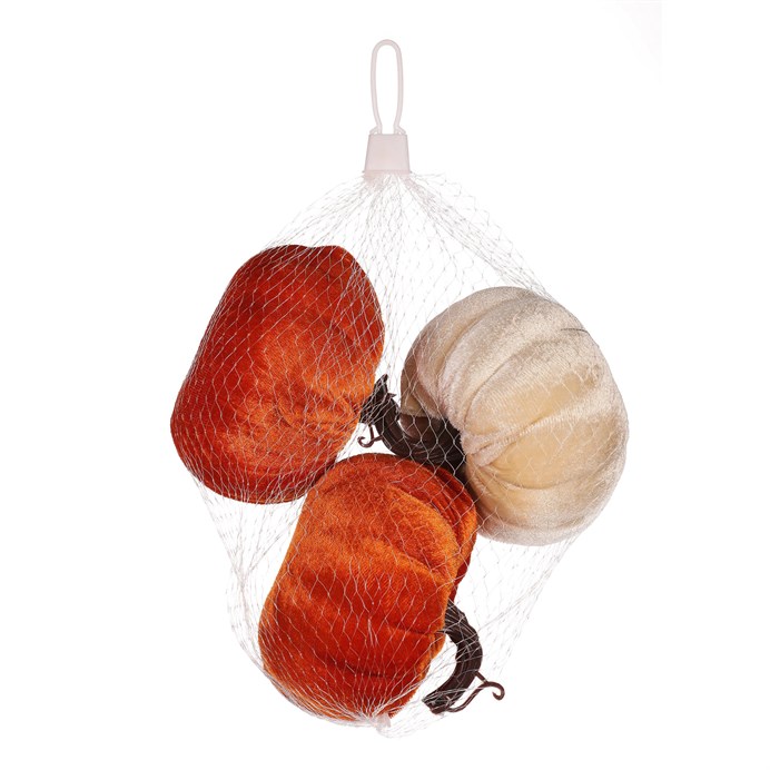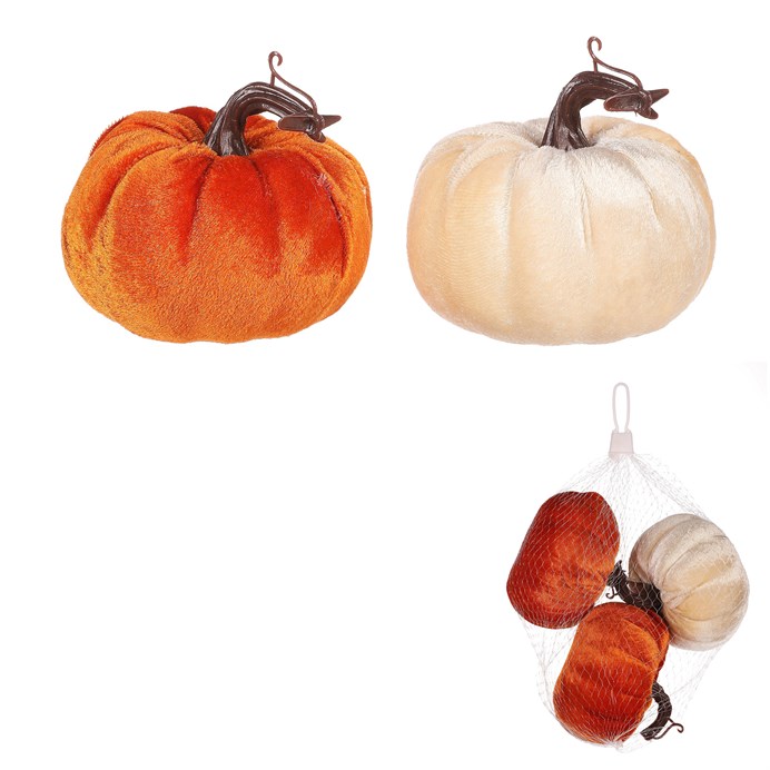 Dotaz na produktUmělé dýně potažené látkou s hebkým povrchem jsou skvělým podzimním doplňkem pro výzdobu jakéhokoli interiéru. Balené jsou po 3 kusech v síťce, všechny ve stejných velikostech, ale 2 různých odstínech (1x krémové a 2x oranžová), a nabízejí nekonečné možnosti aranžování. S jejich všestranností a příjemným vzhledem jsou ideální pro vytvoření hřejivé podzimní atmosféry. Nejen, že tyto tykvovité plody dobře vypadají, ale navíc jsou velmi příjemné na dotek. Můžete je snadno kombinovat s dalšími ozdobami dle fantazie a schopností, tak aby zrovna ta vaše výzdoba byla jedinečná a originální. S jejich trvanlivostí se nemusíte bát, že by se zkazily, a můžete je používat opakovaně i v dalších sezónách.