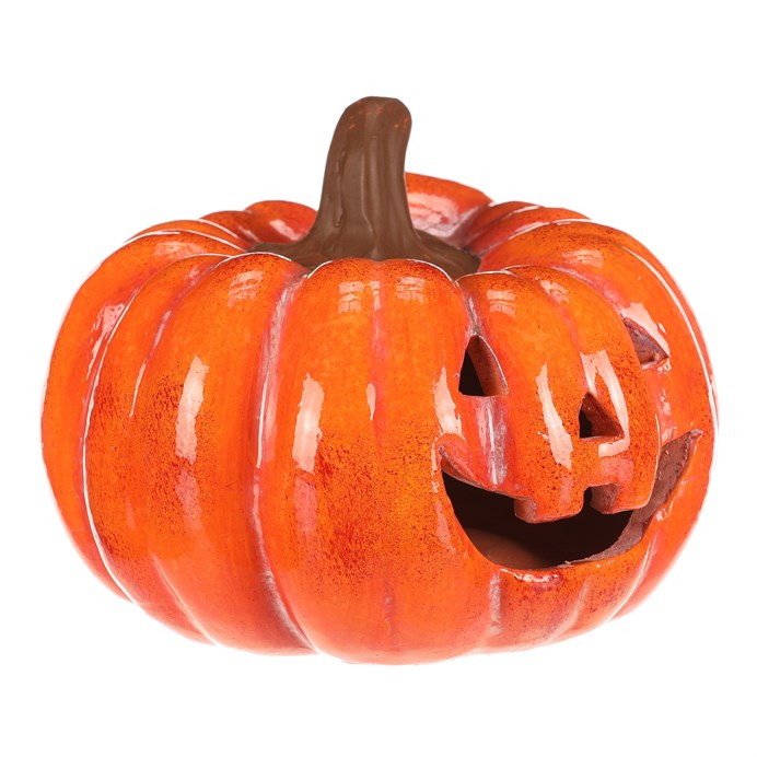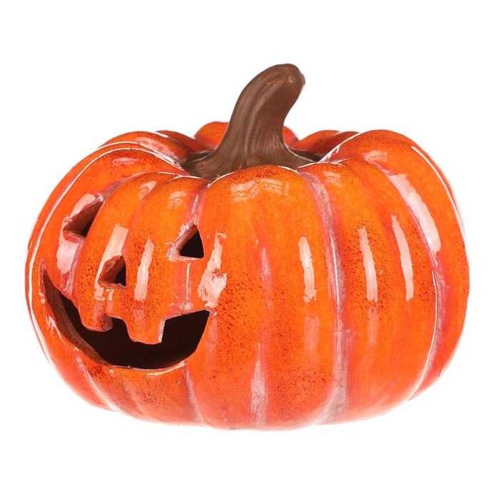 Dotaz na produktKeramická dýně v oranžové barvě s vyřezaným strašidelným obličejem bude ideální dekorací pro podzimní období a Halloween. Je vybavená LED osvětlením uvnitř, což zaručí po jeho rozsvícení neodolatelný světlený efekt, díky paprskům vycházejícím skrze všechny otvory.